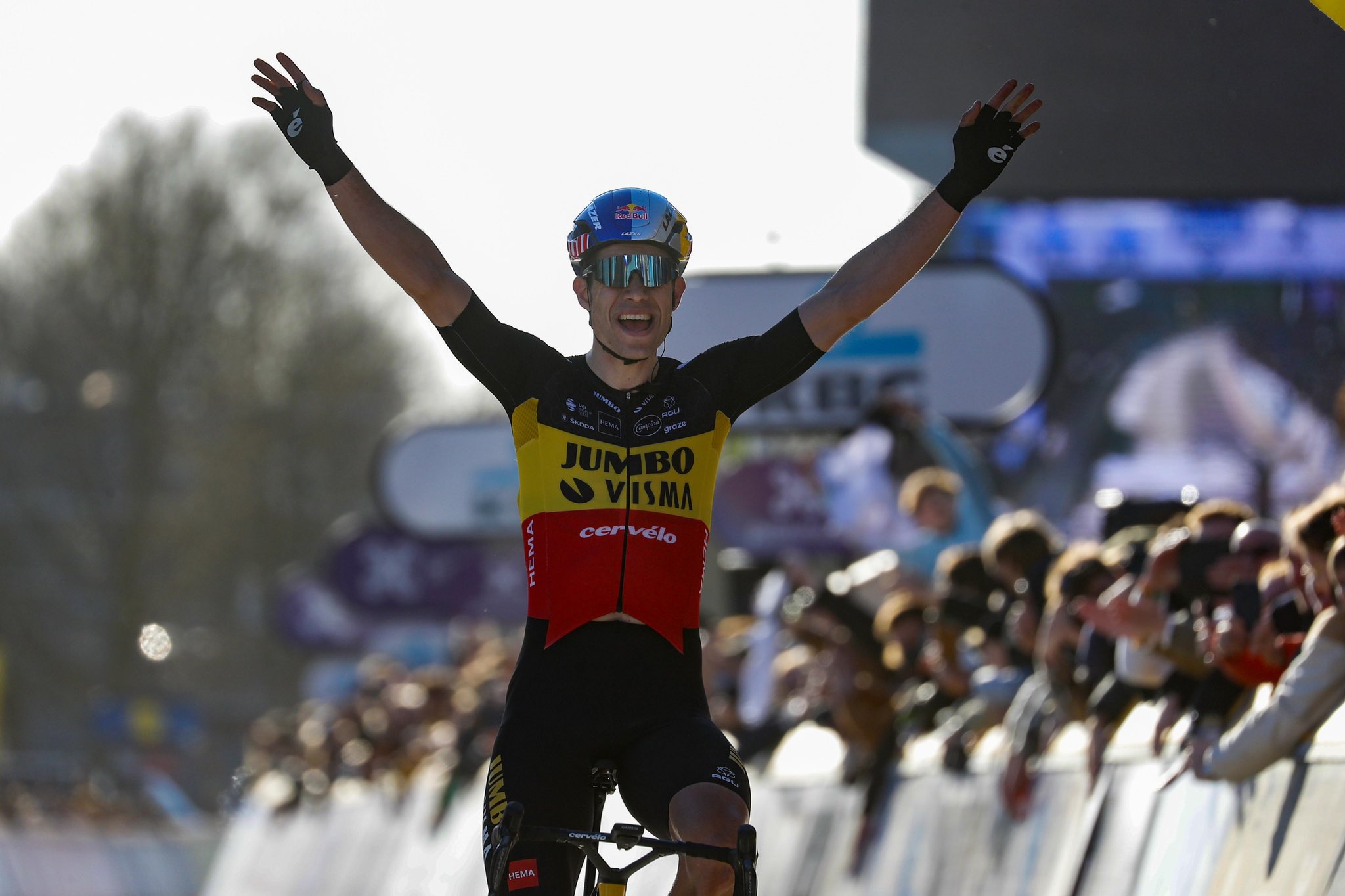 La fuga se formó desde los primeros instantes de la clásica. Ben Healy, Juri Hollmann, Alexander Konychev, Quentin Jauregui, Ruben Apers, Donavan Grondin y Morten Hulgaard formaron la escapada en un día especialmente complicado para que llegara a buen puerto. Por detrás, el grupo se fracturaba en dos. En el grupo delantero marchaba Van Aert. Muy atento durante toda la carrera, fue precisamente el belga el que lanzó un ataque a 13 km de meta para marcharse en solitario. El ciclista de Jumbo le ganó el pulso al grupo trasero y cruzó la línea de meta en solitario a más de 30 segundos de sus perseguidores. Sonny Colbrelli venció en el esprint del grupo, por delante de Greg Van Avermaet.