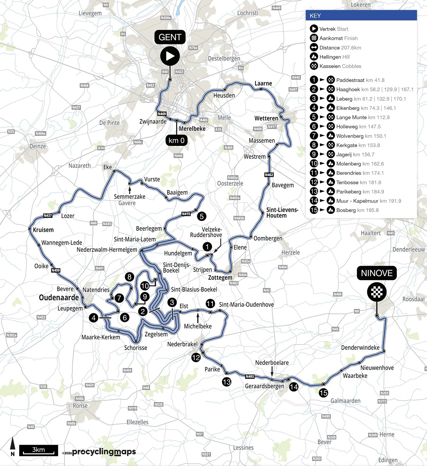 A los equipos de élite del WorldTour se sumarán siete formaciones de categoría profesional, completando una participación de alto nivel. Cofidis, Pinarello-Q36.5 Pro Cycling Team y Tudor Pro Cycling Team estarán presentes gracias a sus invitaciones automáticas, mientras que las wild cards otorgadas por la organización han sido para Burgos-Burpellet-BH, Flanders-Baloise, TotalEnergies y Unibet Rose Rockets, configurando un cartel variado y competitivo para la apertura del bloque de clásicas del norte.