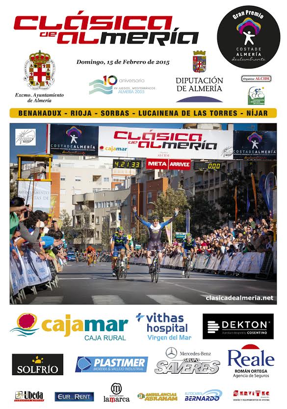 Con una participación de 18 equipos de los que 8 pertenecen al UCI WorldTour –Movistar, FDJ, AG2R, Etixx-Quick Step, IAM Cycling, Trek, Astana y Katusha- se disputará el domingo 15 de febrero la XXVIII Clásica de Almería, que fue presentada la semana pasada por el organizador de la prueba, José Manuel Muñoz, el vicepresidente de la Diputación, Javier Aureliano García, y el alcalde de Almería, Luis Rogelio Rodríguez.