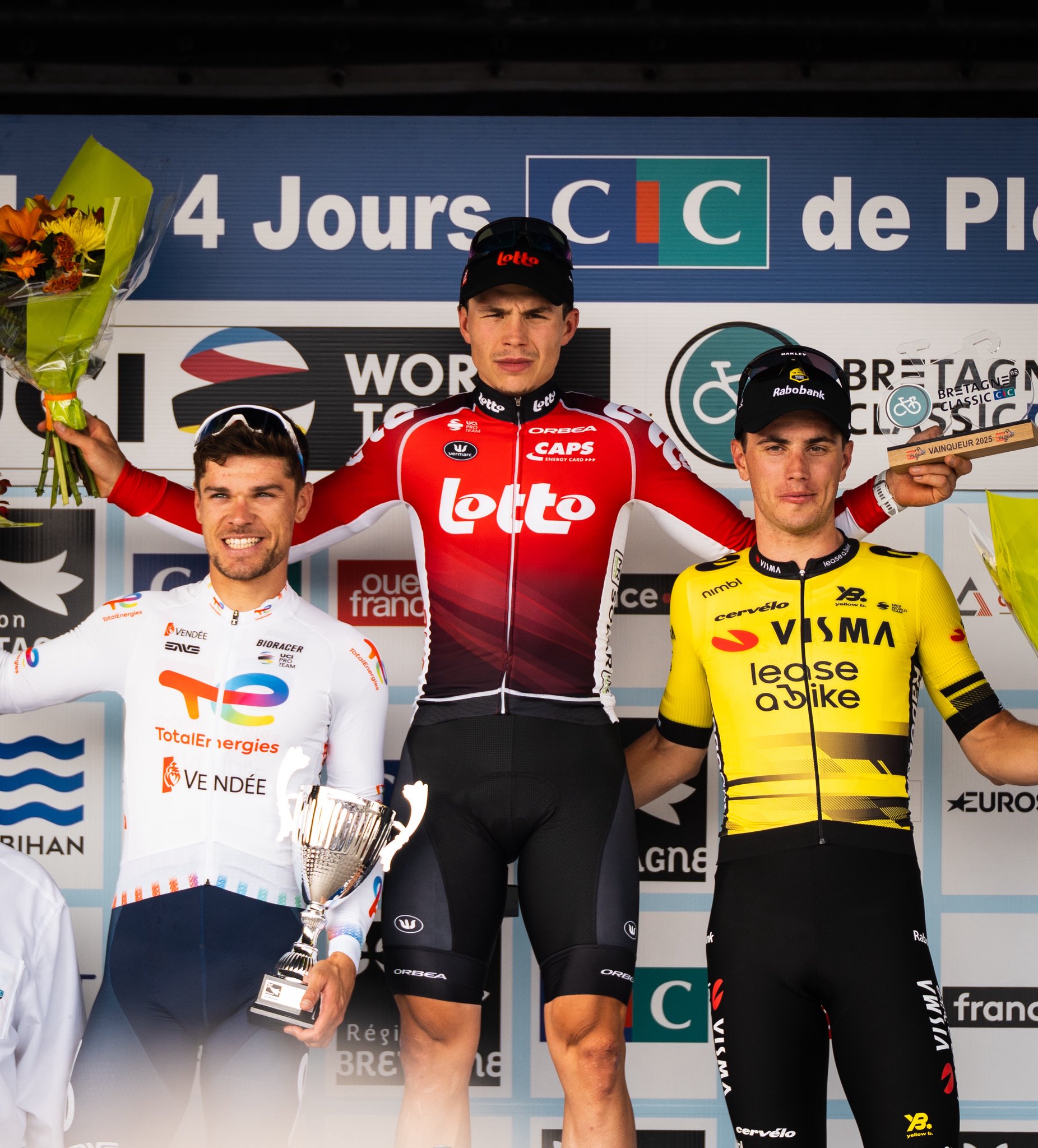 Arnaud De Lie (Lotto): «Siempre es un sprint muy difícil en Plouay. El momento en que he atacado hoy ha sido perfecto, estoy contento de haber podido ganar. Es una de mis carreras favoritas del calendario. También quiero dar las gracias a mis compañeros de equipo por su trabajo durante todo el día. En las últimas ediciones, quizá me esforcé demasiado, pero esta vez he corrido con inteligencia. Me he limitado a seguir los grandes movimientos en la subida y a permanecer en los grupos grandes. En la recta final, he seguido la rueda de Olav Kooij y he conseguido adelantarle. He subido al podio en mis tres últimas carreras, es un final de año realmente increíble».