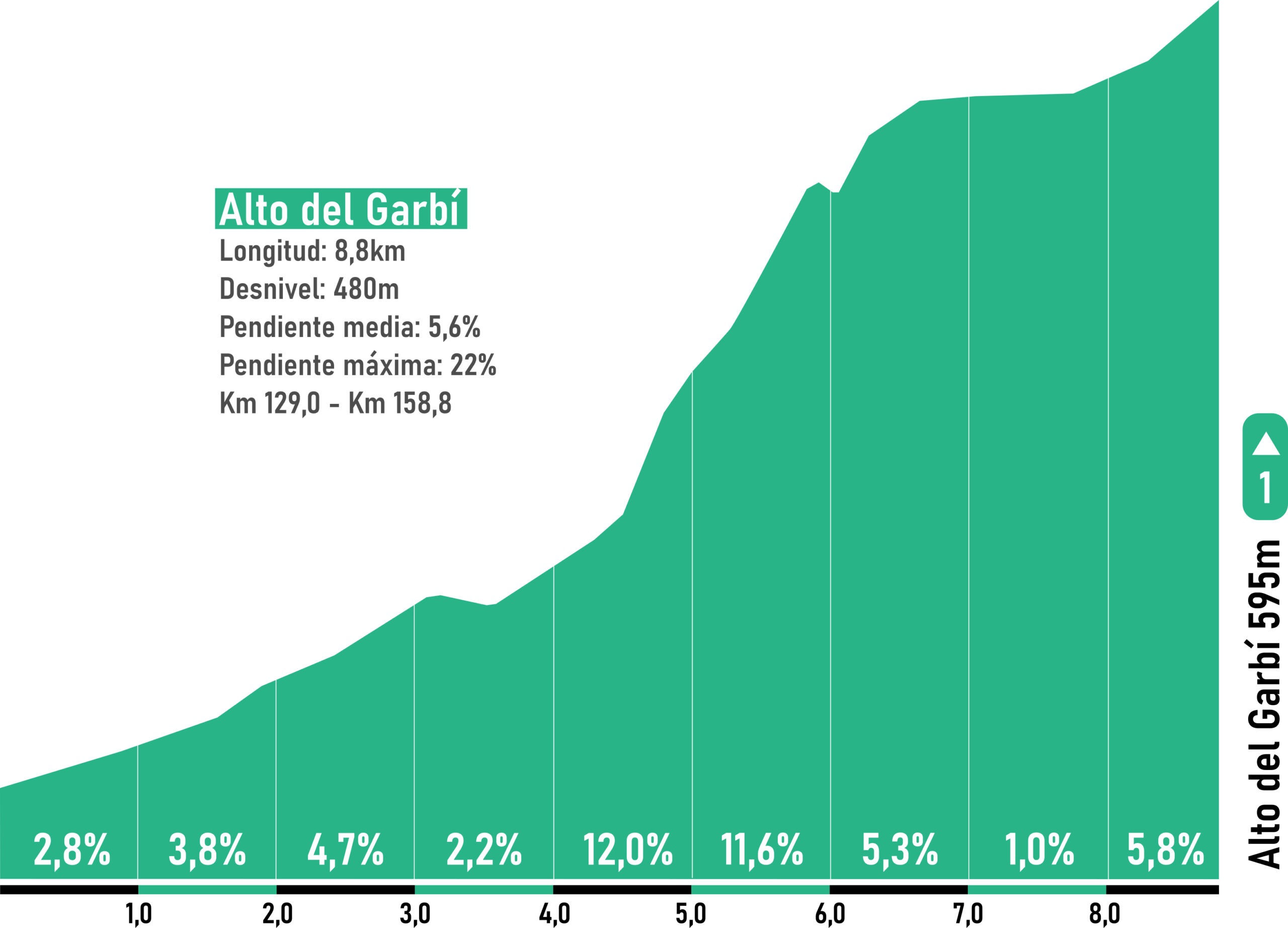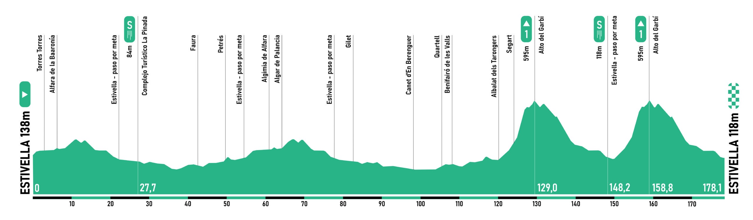Brunel marchó durante bastantes kilómetros en cabeza, pero el pelotón se acercó mucho a él al inicio del puerto del Garbí. Una subida con rampas de hasta el 12% que el ciclista en cabeza iniciaba con algo menos de 30 segundos de ventaja sobre un grupo cada vez más reducido. Brunel era neutralizado en las rampas más duras y pronto se empezaban a producir ataques en un grupo que se que veía reducido a unos ocho hombres.