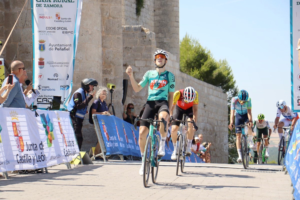 Haimar Etxeberria (Kern Pharma) estrenó su casillero de victorias como profesional este domingo en la Clásica Castilla y León, imponiéndose con autoridad en la exigente subida final al Castillo de Peñafiel. El ciclista vasco remató una actuación impecable de su equipo al superar en los últimos metros a Jesús Herrada (Cofidis), mientras que el italiano Christian Scaroni (Astana Qazaqstan Team) cerró el podio.