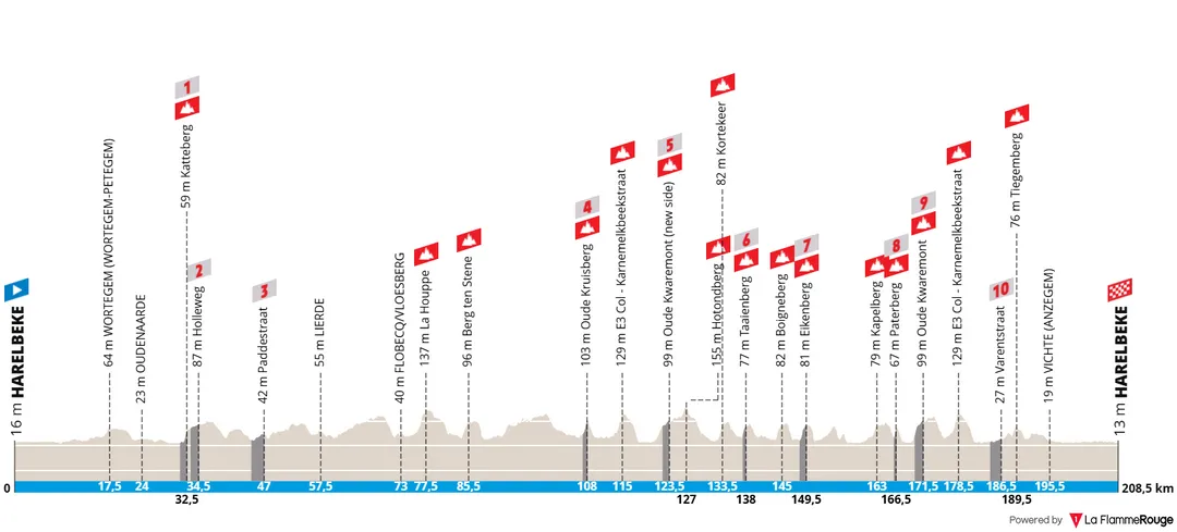 Los corredores ya no subirán el Oude Kwaremont una sola vez, sino dos. La tradicional sucesión con el Paterberg se mantiene en la segunda pasada, mientras que la primera se realizará por la Keuzelingsstraat, una carretera sin adoquines que ofrece un enfoque diferente.