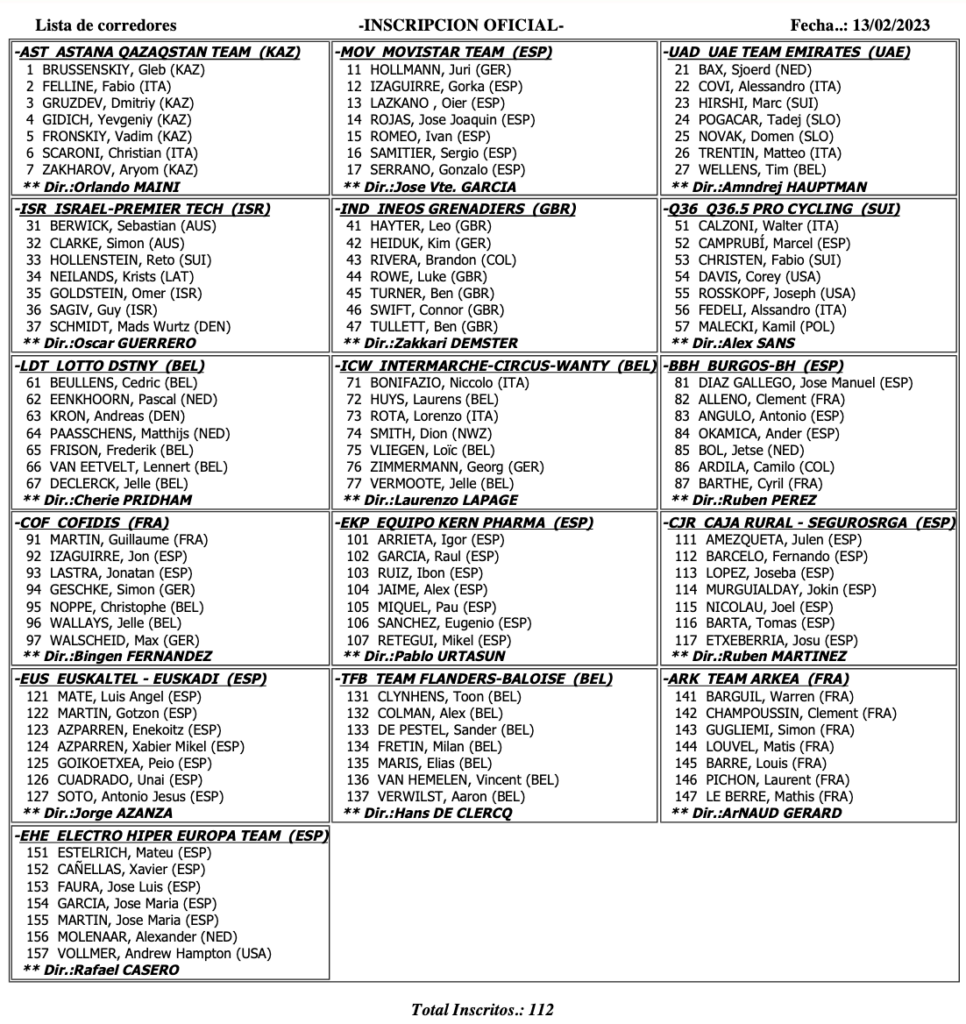 Se publican todos los dorsales oficiales de todas las pruebas UCI. Jaén los ha enviado esta misma mañana y ya están en la web.