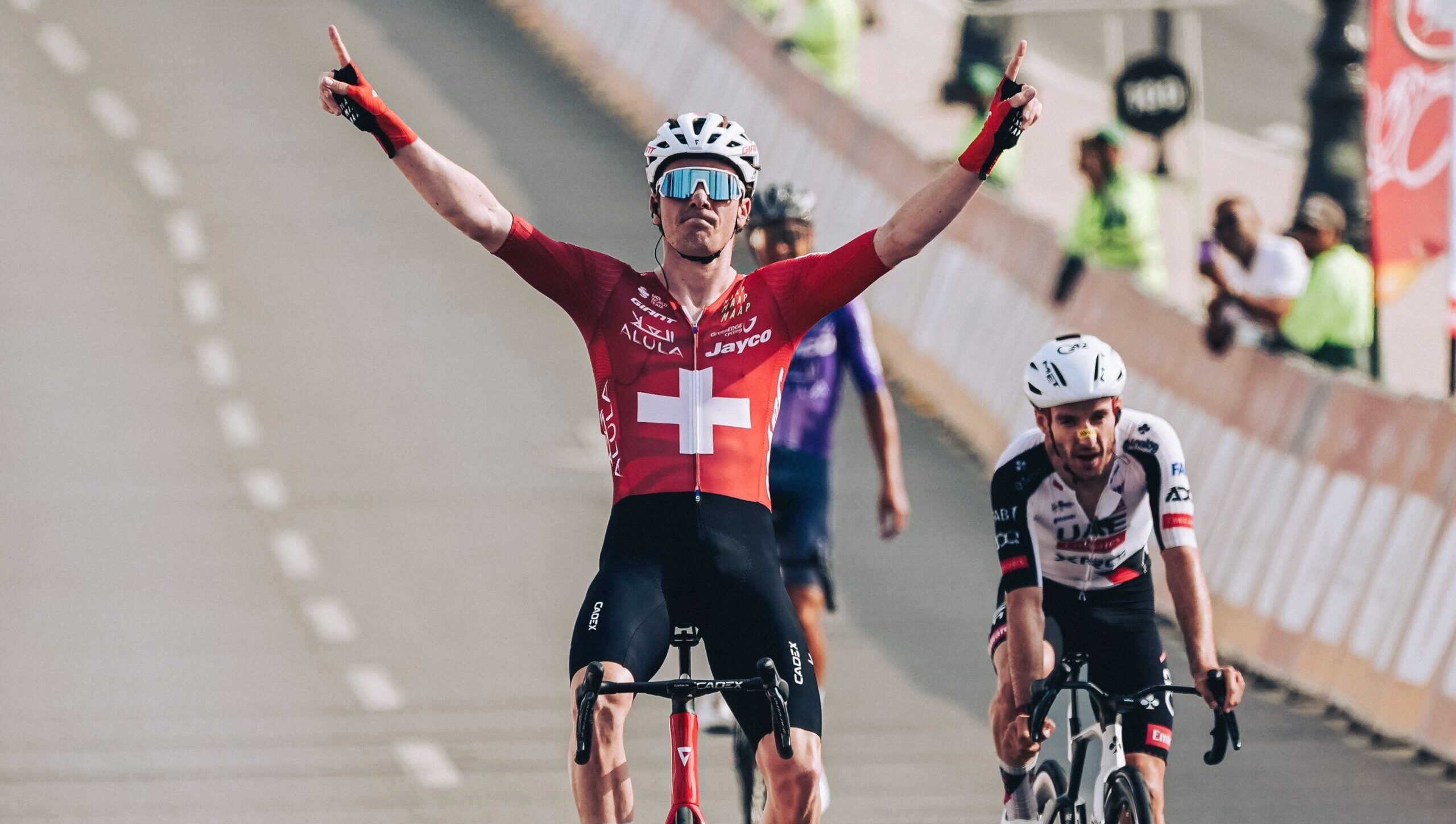 Mauro Schmid (Jayco): «Sabíamos que iba a ser un final explosivo y el equipo ha jugado sus cartas a la perfección. Poder batir a un corredor como Adam en su terreno me da mucha confianza para lo que viene».