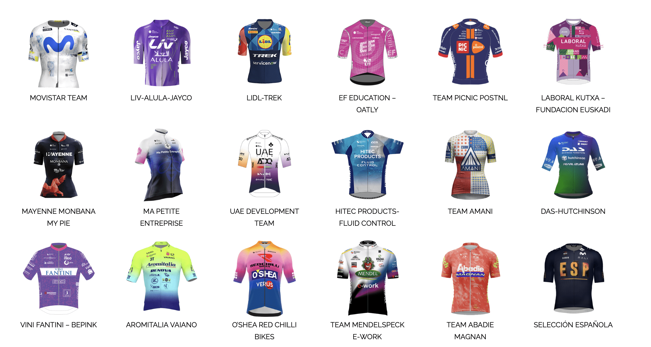 El cartel de esta temporada acudirán 18 escuadras, destacando la presencia de cinco formaciones WWT: Movistar, Lidl, Liv, EF Education y Picnic. Junto a ellas, el equipo local Laboral Kutxa que buscará el protagonismo del día.