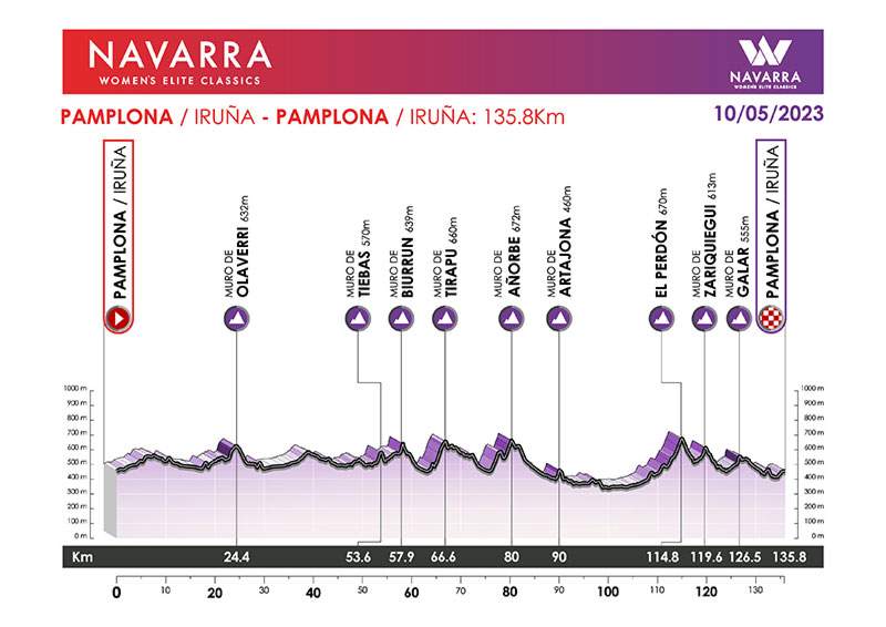 La prueba contará con los muros que ya tenía en la edición anterior, pero con la novedad del muro de Añorbe, lo que hace un total de 8 muros y un puerto, el ya mítico puerto del Perdón. El recorrido constará de 135,8 kilómetros, 11 más que en la edición 2022, y recorrerá los principales muros de Pamplona, destacando los de Olaverri, Biurrun y Galar, con una pendiente máxima del 21%.