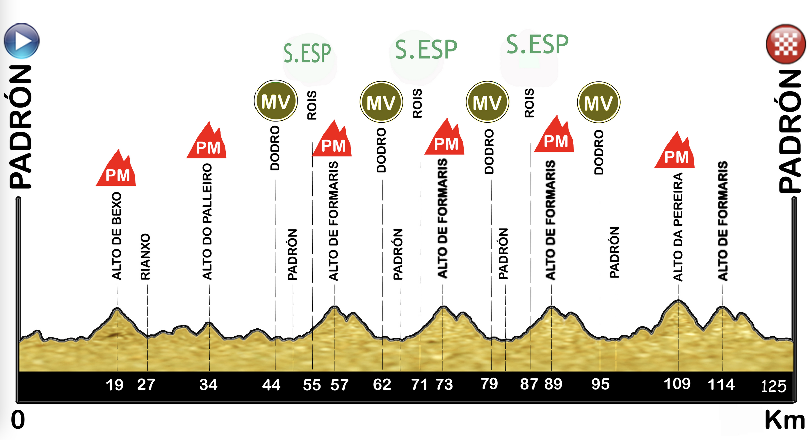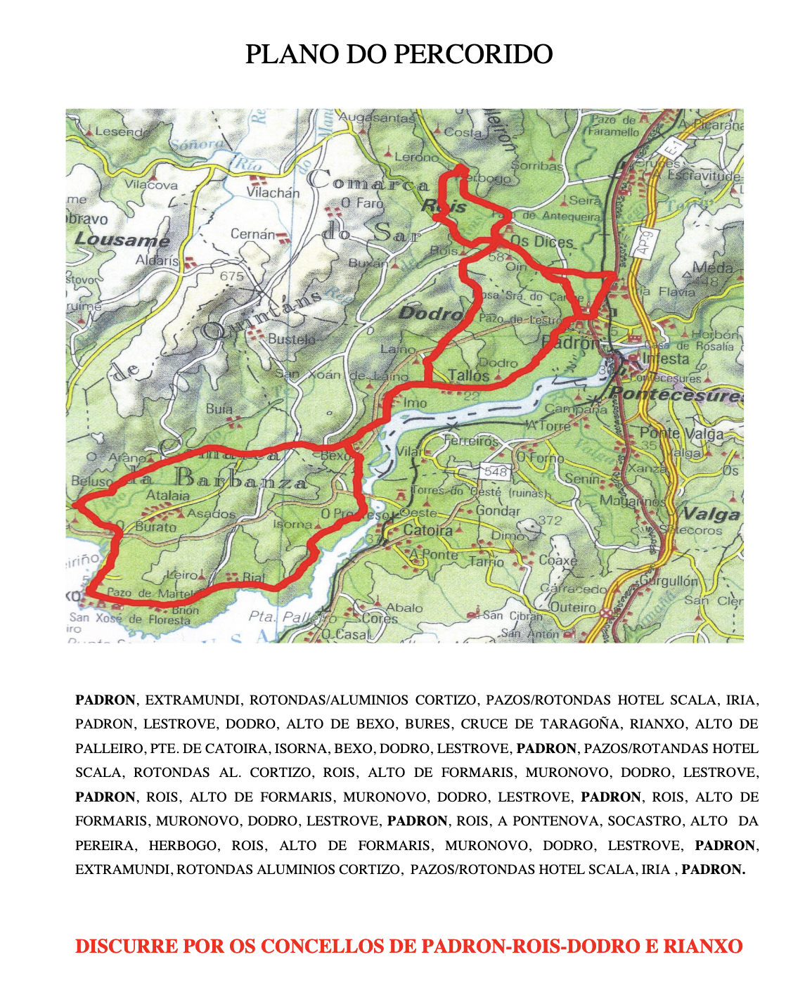 La prueba se disputará sobre un circuito de 125 km que discurrirá por los municipios de Padrón, Rois, Dodro y Rianxo, “un recorrido rompepiernas” en palabras de la organización. El pelotón partirá de la explanada do Souto a las 14 horas y se dirigirá hacia Rianxo para afrontar las subidas a Bexo y Palleiro en el primer cuarto de carrera. A continuación, se enfrentarán al Alto de Formarís, un premio de montaña que deberán superar en cuatro ocasiones, la última después de haber pasado por Espai, Socastro y el Alto da Pereira, una zona donde se espera que se pueda romper la carrera, con rampas que superan el 17 % de desnivel. Tras el último paso por Formarís y la bajada hacía Laíño-Muronovo, la prueba encarará los 10 km finales por Dodro y Padrón, donde el vencedor debería cruzar la línea de meta pasadas las 17 horas.