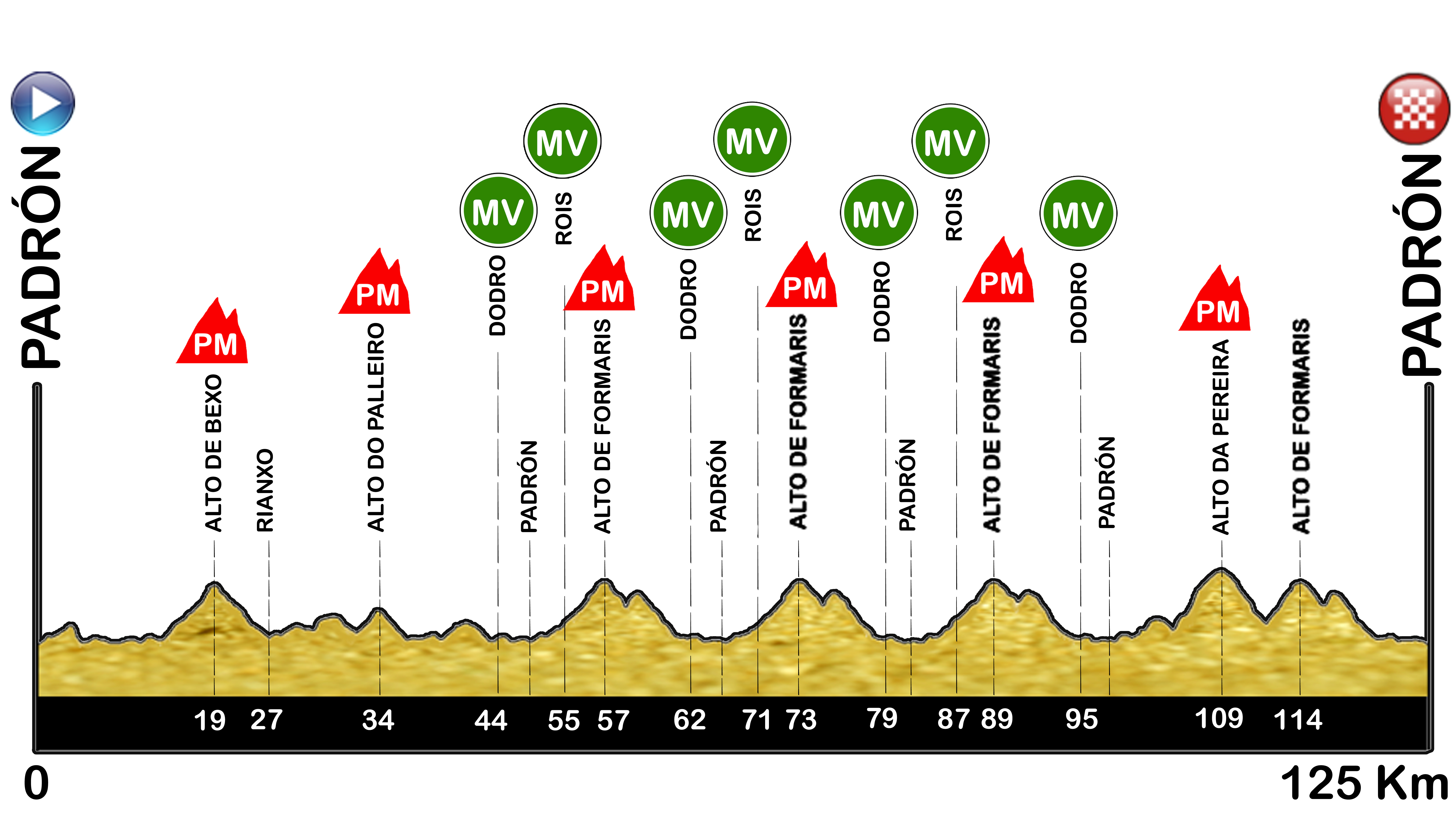 La prueba arrancará a las 12:00 horas desde la explanada do Souto en el municipio sareño. Los 125 kilómetros del recorrido incluyen seis premios puntuables de montaña, con cuatro ascensiones al Alto de Formaris, a las que hay que añadir el Alto de Bexo y el Alto do Palleiro, primer y segundo puertos de la jornada, respectivamente. La llegada está prevista para las 15:15 aproximadamente.