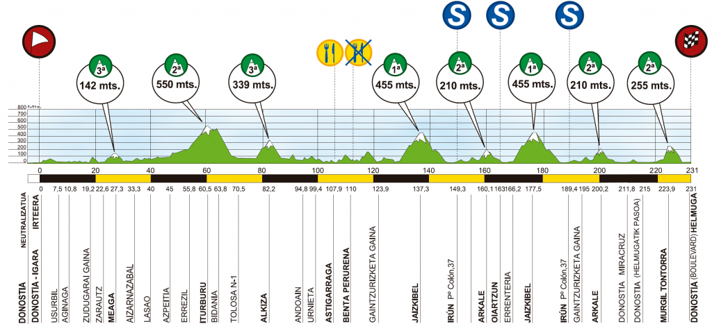 La 37ª Clásica San Sebastián Region se celebra este sábado 29 de julio, con un recorrido de 231 kilómetros que comenzará en la calle Hernani de San Sebastián a las 11:27 horas y está previsto finalice entre las 17:15 y las 18:00 horas en el Boulevard de la ciudad.