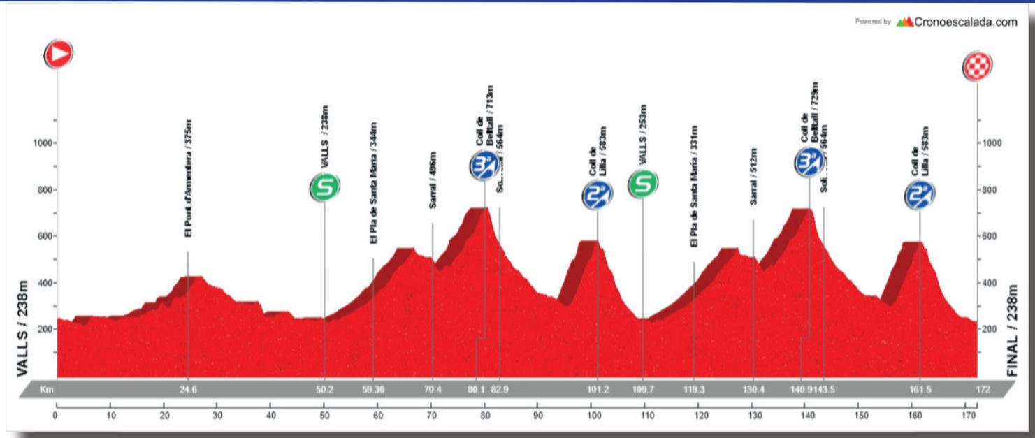 El alicantino, subcampeón del mundo de ciclocross en Bieles, transitó en primera posición en el primer paso por la línea de meta de Valls cuando, con todavía más de 120 kilómetros por delante, el trío de escapados contaba con algo más de dos minutos y medio de renta sobre el gran grupo.