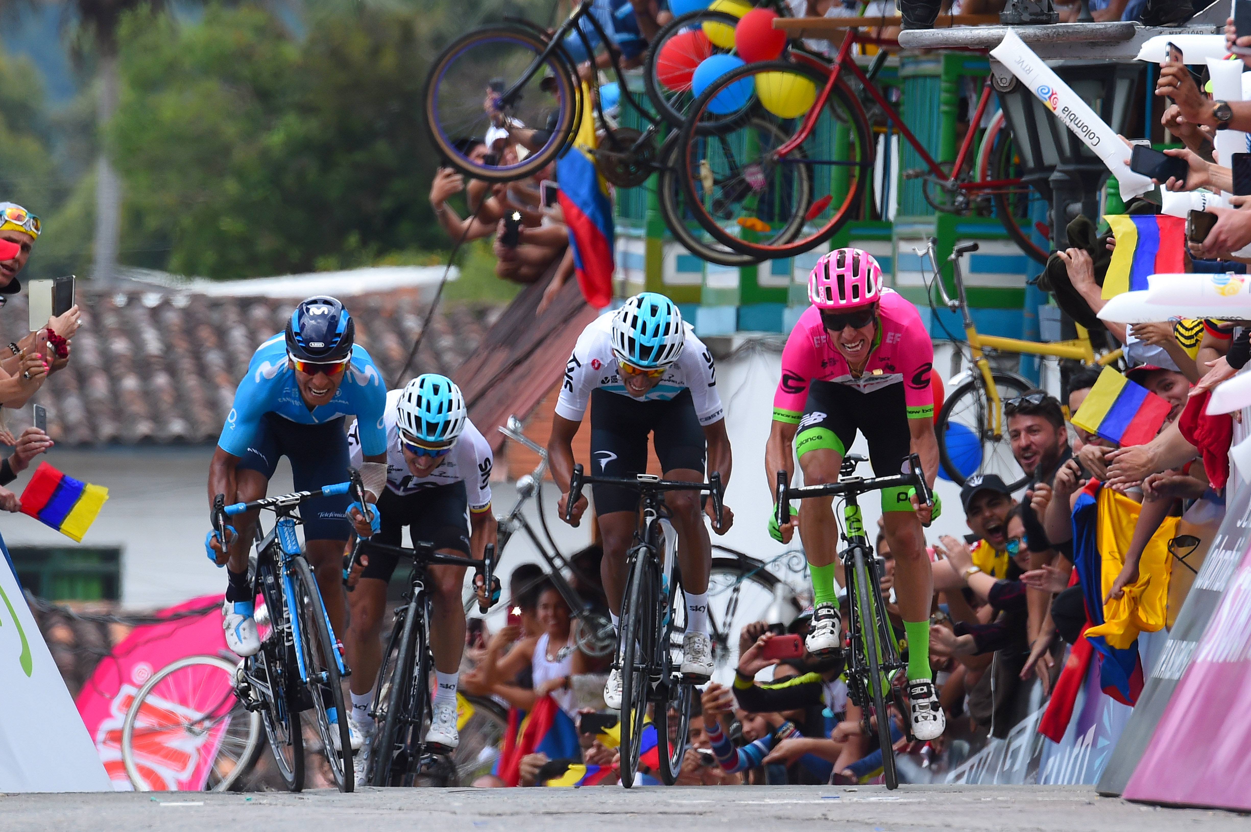 Sin tráfico ya por delante, Quintana soltó el ataque a menos de dos para la línea de meta. Replicó Urán junto a Egan Bernal y Sergio Henao. En el paso por el premio de la montaña, Henao, Quintana, Urán y Bernal se miraban y se vigilaban. En la estrecha recta final, Urán fue el más rápido ante el de Movistar y los dos Sky. Alaphilippe, que hizo lo que pudo, llegó a más de medio minuto y entregó el maillot de líder a Nairo.