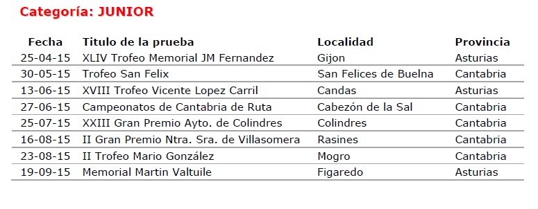La primera prueba puntuable para los júnior será este próximo sábado 25 de abril en Mareo, Gijón, el XLVI Memorial J. M. Fernández.