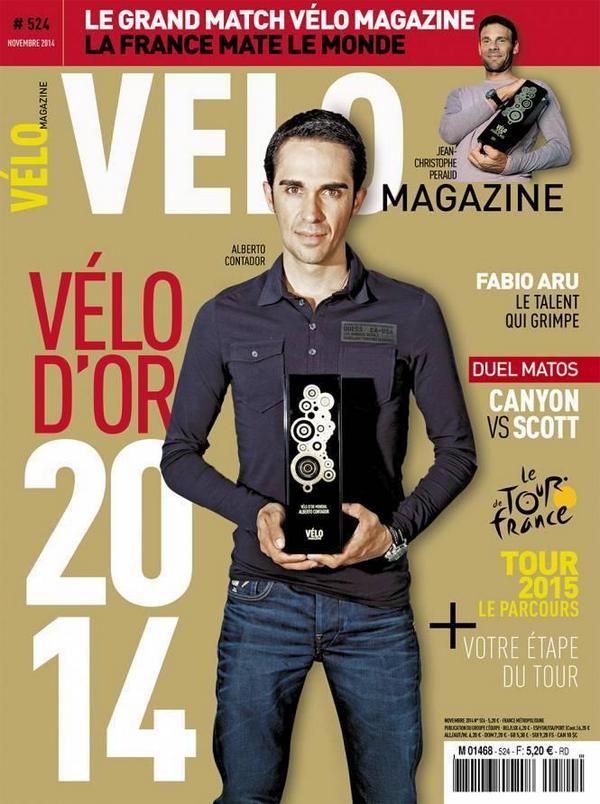 Alberto Contador, ganador de la Vuelta a España y 2º en el UCI World Tour, se ha proclamado vencedor del trofeo Velo d’Or mundial, que otorga el grupo editorial del periódico deportivo parisino L’Equipe a través de su revista especializada Vélo Magazine y que ha hecho hoy oficial.