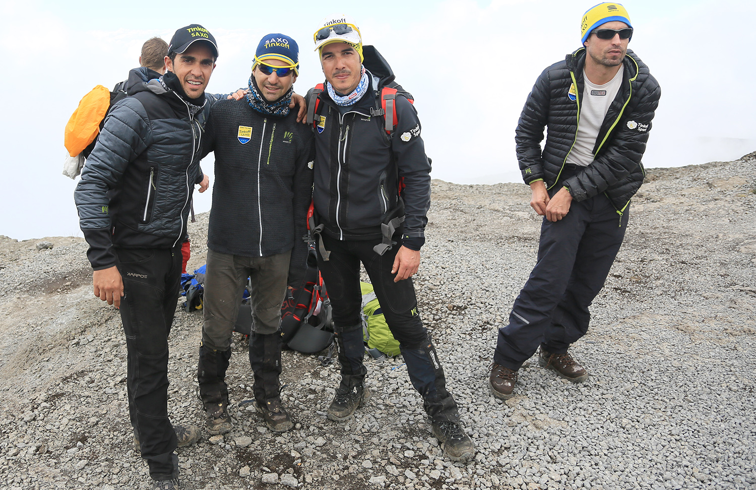 Alberto Contador ha regresado de África tras conquistar la cumbre más alta de su carrera, los 5.895 metros del Kilimanjaro junto con el 70 por ciento de los integrantes del Tinkoff-Saxo, que también lograron escalar la montaña después de una dura marcha a pie de cinco días marcados por una dura climatología. “Ha sido una experiencia nueva en la que todo el equipo ha estado junto, compartiendo momentos buenos y otros realmente complicados. El tiempo no nos ha ayudado, porque los tres primeros días llovió muchísimo y no nos daba tiempo a secar la ropa que llevábamos, lo mismo que las tiendas de campaña y los sacos de dormir”, explicó Alberto Contador. “Más que el esfuerzo físico o la altitud, pues hasta entonces no pasábamos de los 3.800 metros, lo peor de los primeros días fue la lluvia.”