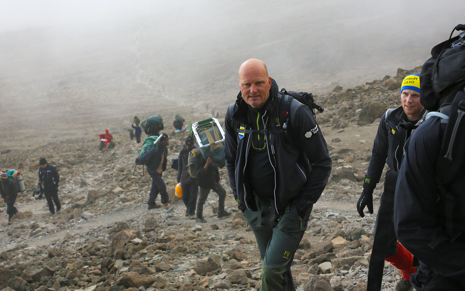 “Por supuesto, la prueba de fuego fue la escalada hasta la cumbre del último día”, continuó el líder del Tinkoff-Saxo. “Subimos desde el último campamento, situado a 4.600 metros, a los 5.895 del pico Uhuru, el punto más alto del Kilimanjaro. Ese día nos levantamos a las once y media de la noche para llegar a la cumbre al amanecer, pero tres horas antes, al irnos a dormir por unas horas, estaba medio nevando y hacía un viento impresionante. Era complicado pensar en subir, pero por suerte al levantarnos el viento nos dio una pequeña tregua y decidimos probar”.