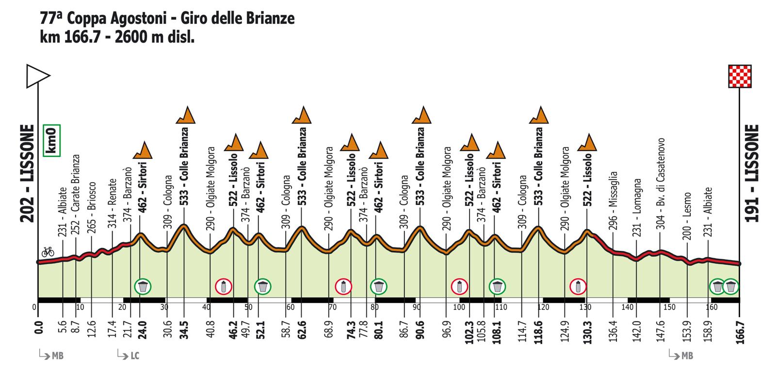 La 77ª edición del Copa Agostoni (1.1) se disputará el domingo 6 de octubre y discurrirá sobre un recorrido de 166,7 kilómetros con salida y llegada en la localidad italiana de Lissone. La parte central de la carrera consistirá en un circuito de 28 kilómetros al que se darán cuatro vueltas, ascendiendo en todas ellas a Sirtori, Colle Brianza y Lissolo.