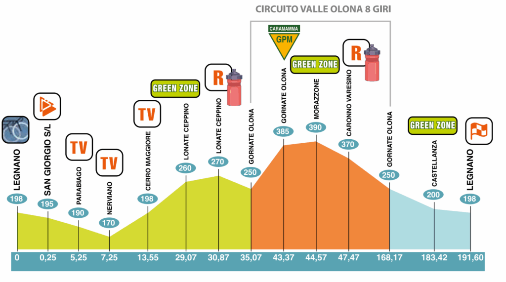 La carrera comenzó con el tradicional ambiente de las grandes clásicas italianas. Tras unos primeros kilómetros rápidos y llanos, se formó la escapada del día con Gianni Vermeersch, Ethan Hayter, Xabier Mikel Azparren, Joel Suter y Samuel Quaranta. El grupo delantero rodó con buen entendimiento, alcanzando una ventaja máxima cercana a los dos minutos, aunque el pelotón, comandado por el Visma, mantuvo siempre la situación bajo control pensando en su velocista Matthew Brennan. A medida que los corredores afrontaban los ocho pasos por el repecho de Caramamma, el desgaste empezó a hacer mella en los fugados. A falta de 50 kilómetros, la diferencia se redujo a menos de un minuto y, poco después, la escapada fue neutralizada. En los tramos finales, varios equipos intentaron endurecer la carrera, con movimientos del UAE Team y del Movistar, pero el pelotón resistió agrupado.