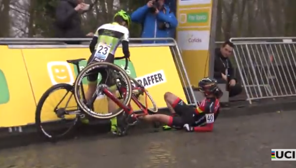 Pero como si la mala suerte que visitó a Iserbyt despertara en Nieuwenhuis la necesidad de mostrar que él y sólo él era el corredor más fuerte del día en el circuito valón, el holandés arrancó ya en los primeros compases de la primera vuelta en busca de un triunfo en solitario que, como ya decíamos, intentó evitar un campeón del mundo que se fue al suelo en ese giro inicial perdiendo un terreno precioso.