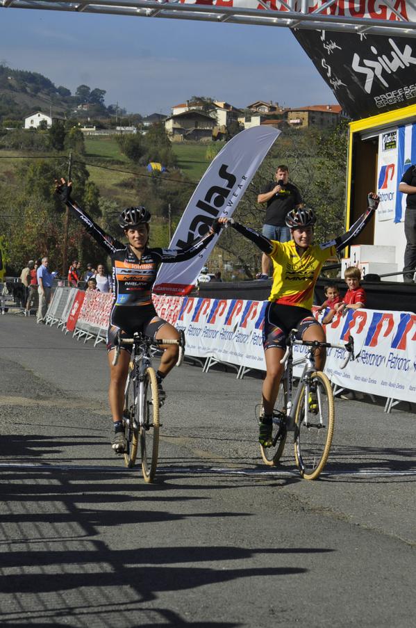 Si ayer en Laudio, Aida Nuño (MMR-Spiuk) y Rocío Gamonal (Kuota) entraban separadas por apenas tres centímetros en un cerradísimo sprint, hoy en Muskiz (Vizcaya), en la cuarta prueba de la Copa de España de cyclo-cross, otras dos corredoras han vuelto a llegar juntas… aunque en una actitud bastante más amistosa, ya que las hermanas Lucía y Alicia González llegaban la mano, con triunfo absoluto para la primera, y sub23 -confirmando su liderato- para la pequeña.