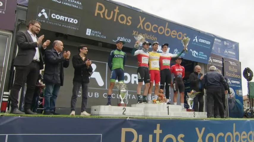 Las Rutas Xacobeas han dado comienzo a las 10:00 h en las calles de Padrón, desde donde han iniciado una ruta que proponía 165 km con seis ascensiones puntuables, siendo las tres últimas un encadenado entre Martelo (1ª), A Pereira (2ª) y Aguasantas (1ª) llamado a decir la carrera, tal y como finalmente ha sido. Los primeros compases de estas Rutas Xacobeas han estado marcadas por la multitud de ataques y movimientos que se han producido sin que ninguno consiguiera fraguar una ventaja. Ha sido ya en torno al km 60, cuando un grupo de cuatro ciclistas, compuesto por Josep Tomás, Owen Lightfoot, Fernando Sanchidrián y Álvaro López, ha conseguido establecerse al frente con 1’20” de renta con respecto al pelotón.