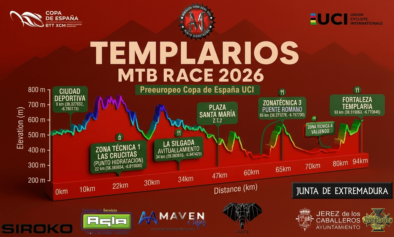 La Copa de España de XCM vuelve este domingo a escena con la disputa del Pre-europeo Templarios MTB Race de Jerez de los Caballeros, prueba que forma parte del calendario Internacional UCI con categoría C2 XCM. La localidad pacense, que acogerá el Campeonato de Europa de XC Maratón en 2027, se vestirá de gala para acoger a los mejores bikers nacionales.