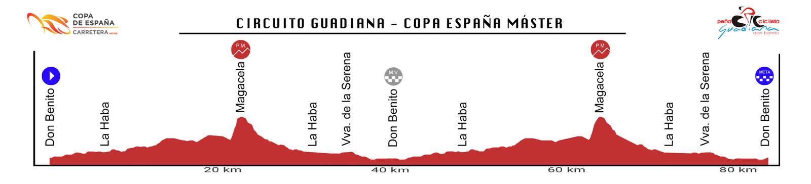 El Circuito Guadiana presentará en 2021 un recorrido de 84 kilómetros para unos ciclistas máster que tendrán que superar en dos ocasiones el alto de Magacela (1 km. al 11% de pendiente media), principal escollo de la prueba y que se presupone juez de la carrera.