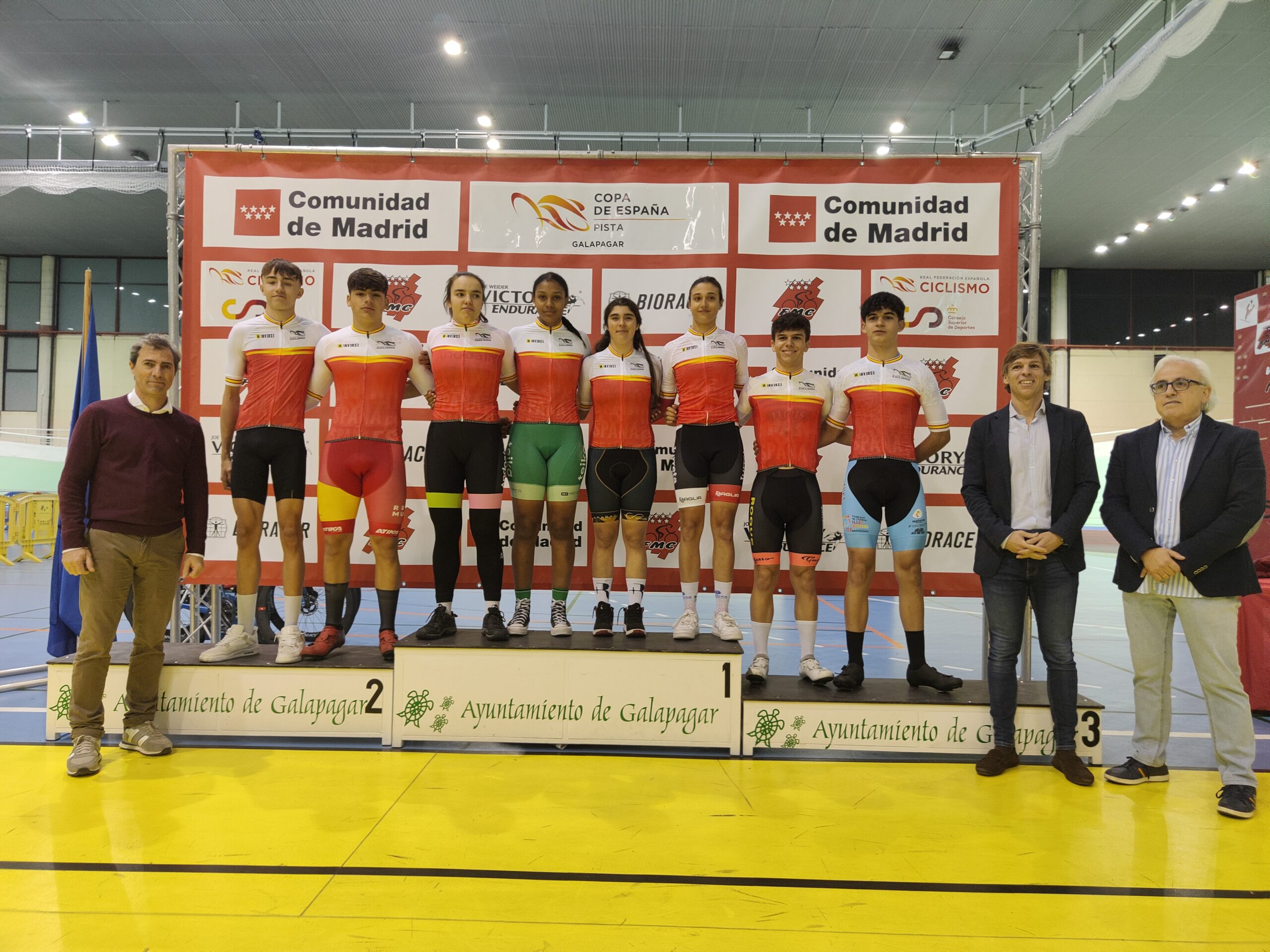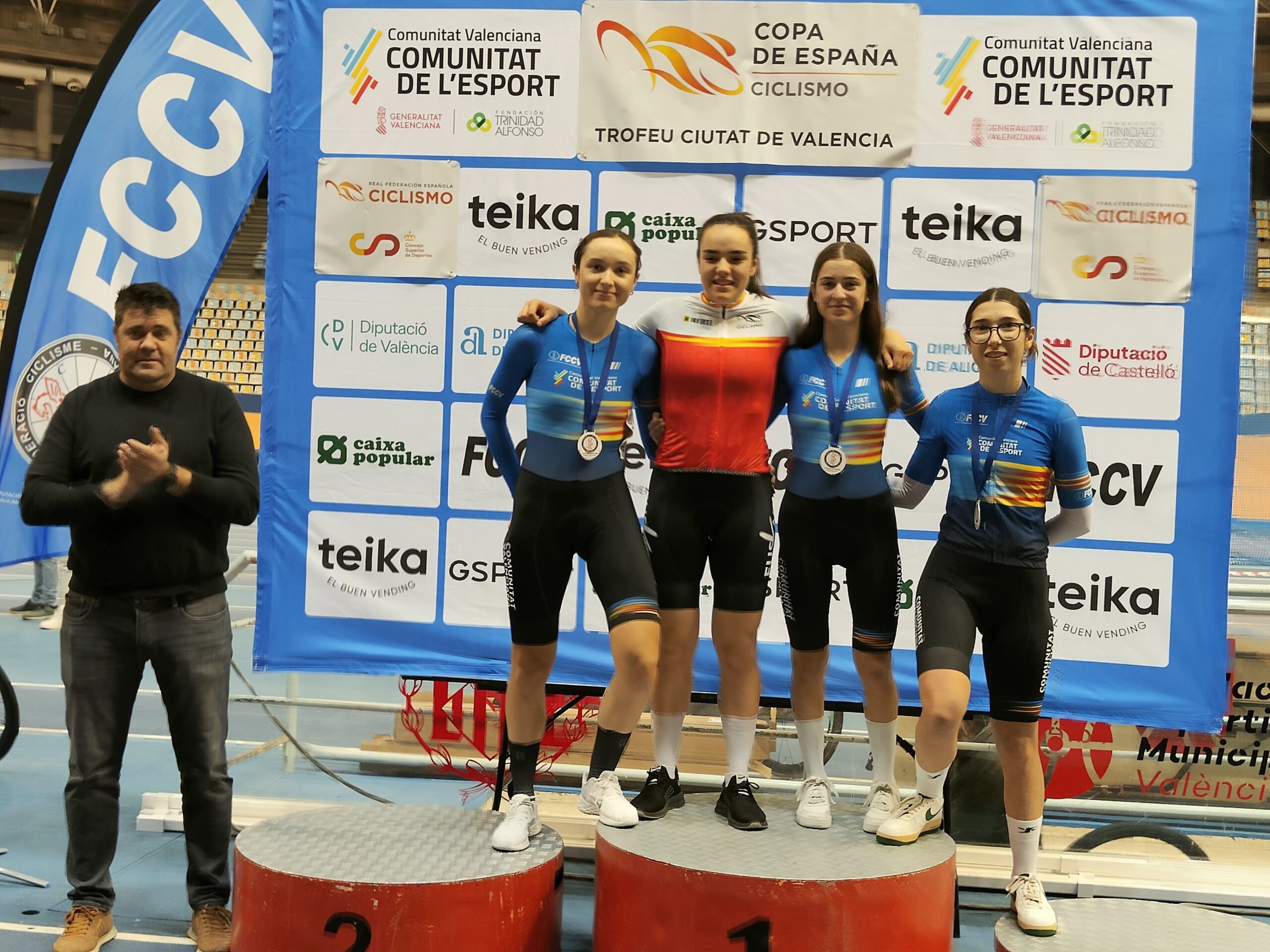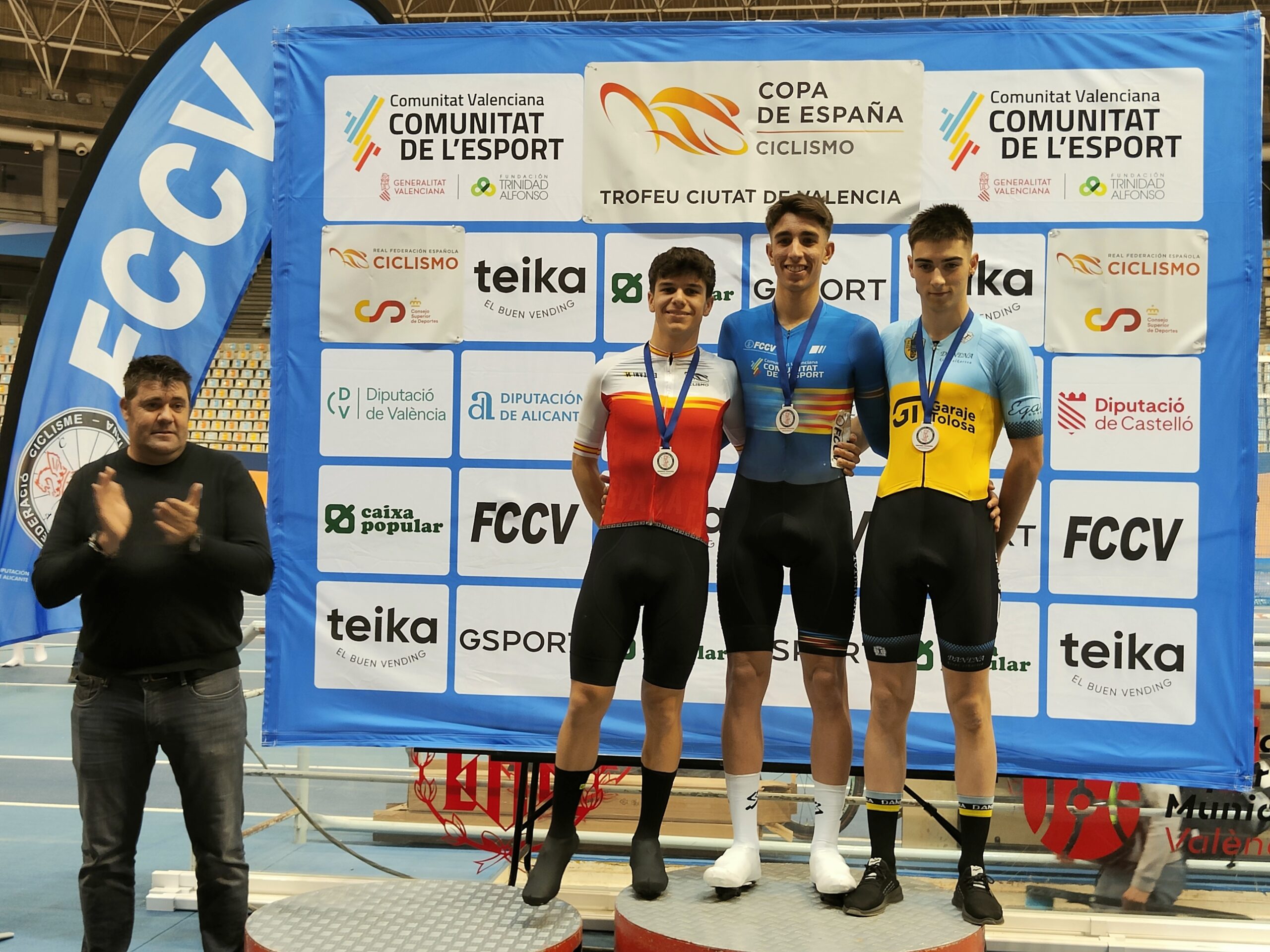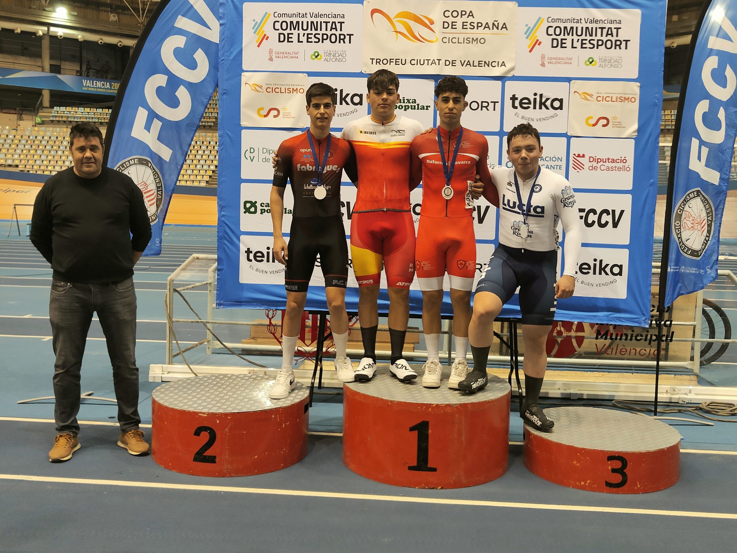 Los juniors Oscar Orts (Team Polti Kometa) y Izaro Etxarri (Andoaingo) y los cadetes Marc San Martín (Baleares) y María Rodríguez (Infineathai-Arabay) en el apartado de fondo, y los juniors Pedro José Nicolás (Murcia) y María Caraballo (Ecológicos Navarra-Beratxa) y los cadetes Alan Arilla (Montroig Track Team) y Yanara Carrión (Teika-Granja Rinya) han sido los vencedores finales de la Copa de España, tras la disputa hoy en el velódromo Lluis Puig de Valencia de la cuarta y última puntuable.