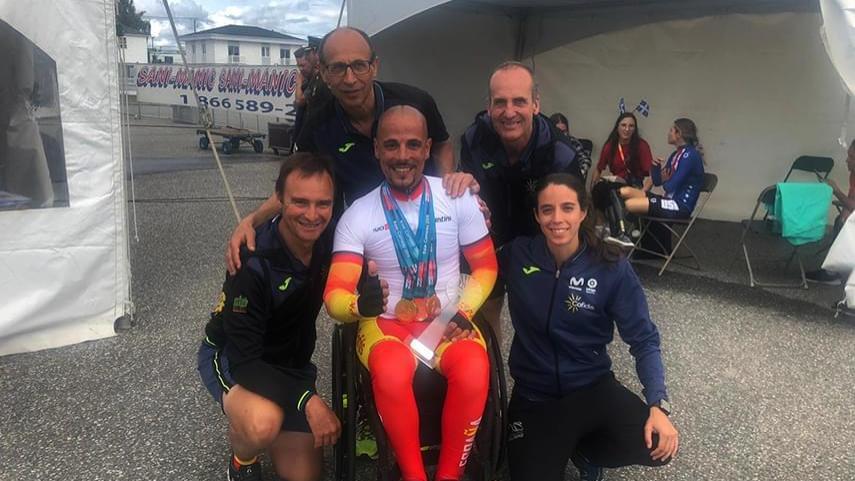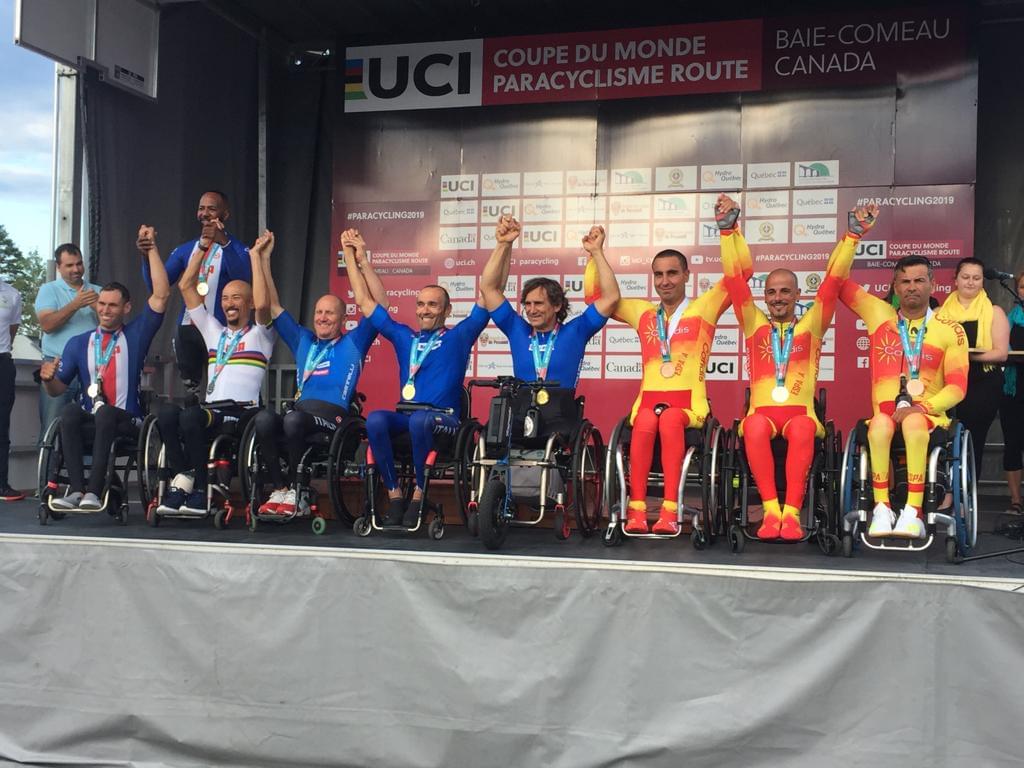 La Selección Española de Ciclismo Adaptado continúa manteniendo el altísimo nivel que lleva ofreciendo durante toda la temporada. En esta primera jornada de la Copa del Mundo de Baie Comeau el combinado dirigido por Félix García Casas ha obtenido un excelente botín de tres medallas en las pruebas contrarreloj gracias a las actuaciones de Gonzalo García Abella, que ha conquistado la plata en la clase T1; Joan Reinoso, que ha sido tercero en T2; y Sergio Garrote, que se ha colgado el bronce en H2.