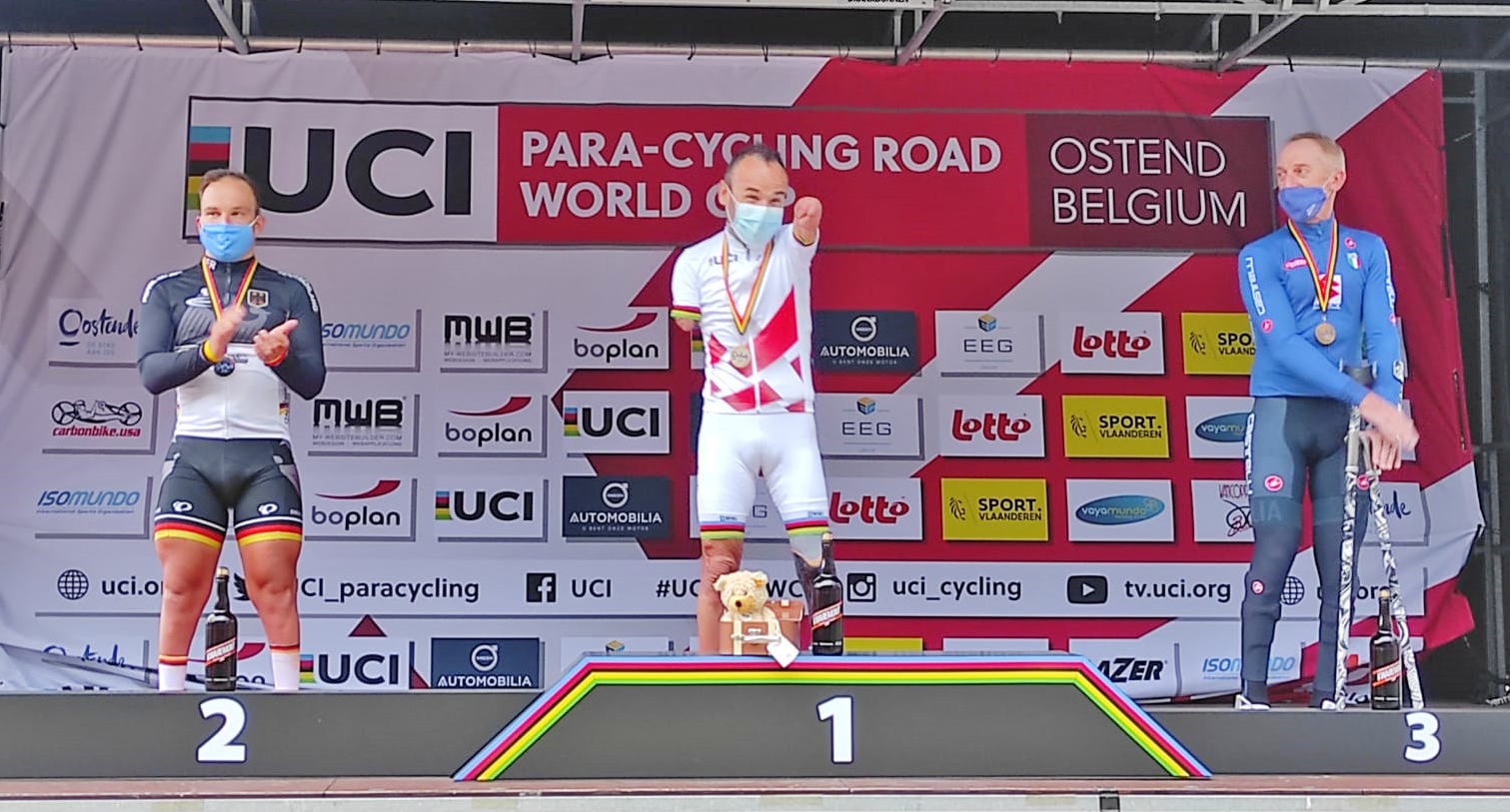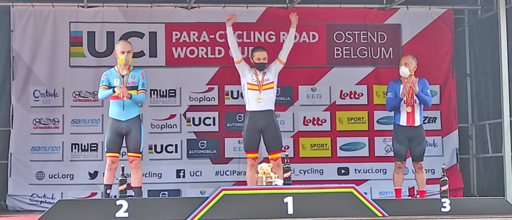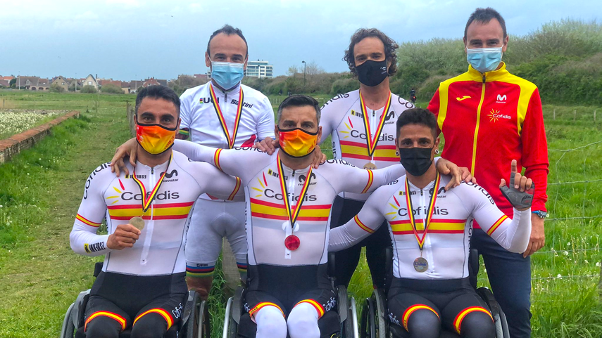 La selección española de ciclismo adaptado ha sumado tres medallas más en la última jornada de una Copa del Mundo de Ostende (Bélgica) que ha vuelto a poner de manifiesto el excelente nivel de nuestros ciclistas, que han acumulado un total de nueve preseas en los cuatro días de competición: cuatro de oro, tres de plata y dos de bronce. La jornada final ha coronado con la medalla de oro a Ricardo Ten (MC1), con bronce a Óscar Higuera (MC4) y con la plata al equipo de relevos (Garrote, García Marquina y Rider).
