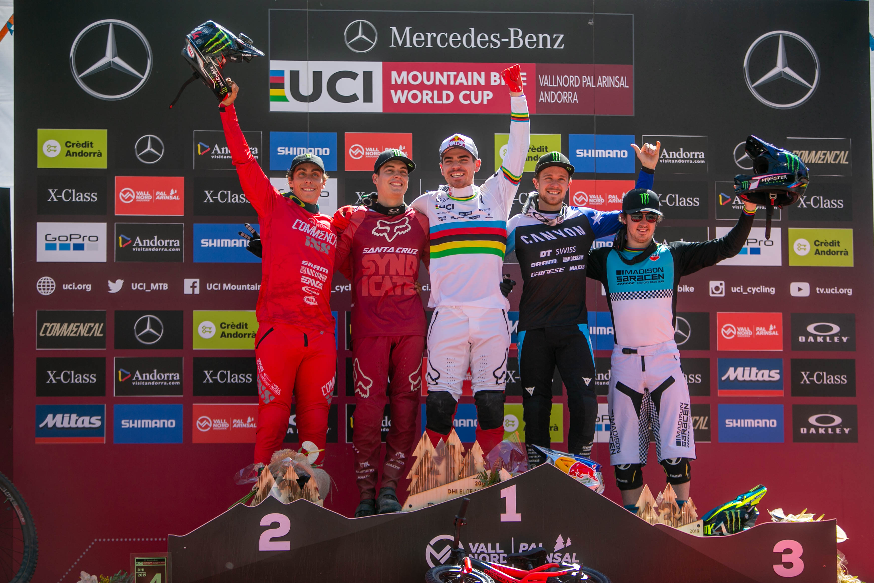 Millones de seguidores y espectadores de televisión han presenciado este sábado, 6 de julio, cómo durante las finales de la disciplina de descenso, los riders luchaban para conseguir el primer lugar. En categoría elite masculina, Loïc Bruni, que ha hecho un tiempo de 4:11.05, ha sido el ganador después de luchar y completar la bajada de 2,5 kilómetros con muy poca diferencia sobre su compatriota Loris Vergier (4:11.47). En tercera posición y con una diferencia de poco más de un segundo, el australiano Troy Brosnan (4:12.25) le sacaba la posición al francés del equipo Commençal Vallnord, Amaury Pierron.