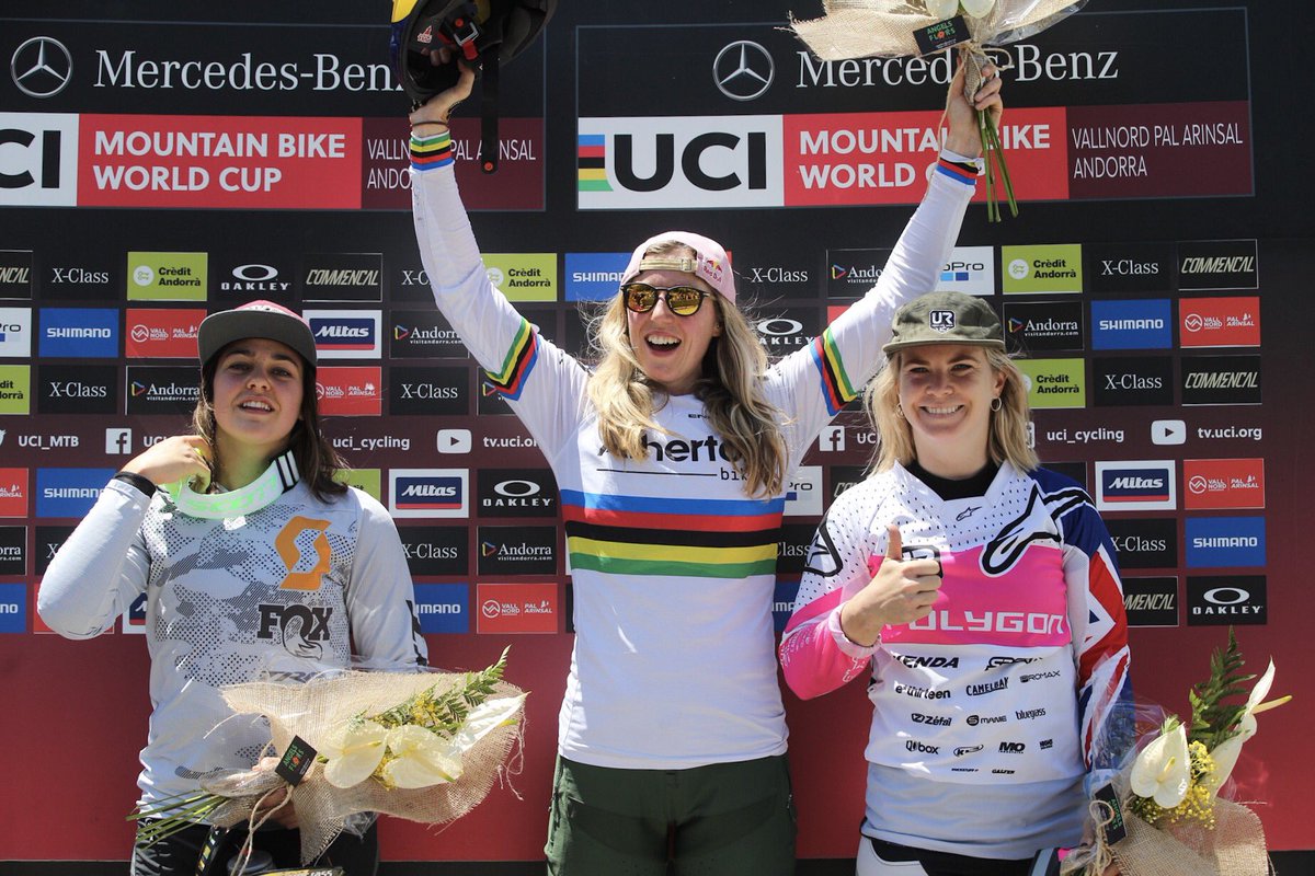 En categoría femenina se ha notado más margen entre los resultados de las ganadoras. La británica Rachel Atherton se ha llevado la victoria con un tiempo de 5:00.62 en esta final elite de descenso. La británica, ha conseguido superar con una diferencia de 3 segundos de la segunda clasificada, la francesa Marine Cabirou, que ha conseguido un tiempo de 5:03.11. Y finalmente, en mismo posición que el año pasado, el bronce ha estado para la australiana Tracey Hannah, que vuelve al podio de La Massana con un total de 5:07.75. Actualmente la australiana ocupa la primera posición en el ranking de la Copa del Mundo de BTT.