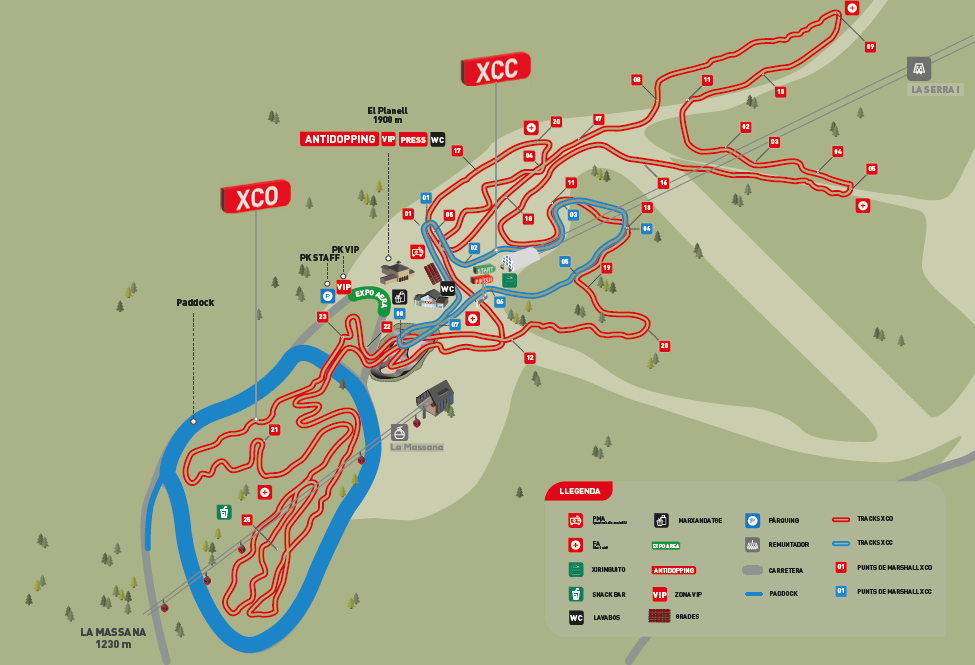 En cuanto a la carrera de cross-country (XCO), este año presenta cerca de un 25% de novedades, donde se integra nuevos puentes que conectan el Paddock con los espectadores ya la vez, el pump track . Como cada año, los tramos no visibles podrán verse a través de la pantallas gigantes emplazadas en los mismos circuitos, tanto de XCO como DHI.