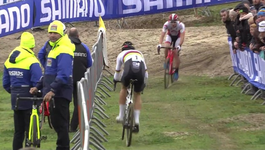 La carrera entró entonces, si es que eso es aplicable al ciclocross, en una fase de cierta pausa. Mientras que Van der Poel aumentaba muy tímidamente su renta al frente de la prueba, el trío perseguidor se limitaba a vigilarse sabedores de que, por detrás, las fuerzas ya eran muy justas y nadie se iba a poder acercar a ellos.