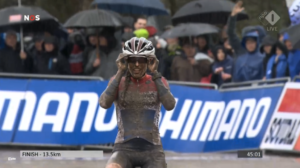 Finalmente, no pudo alcanzar a Van der Poel, como tampoco lo pudo hacer con Aerts cuando este se fue al suelo en la última vuelta. Y, para rematar la mala suerte, una inoportuna caída que le descentró por completo la bicicleta, permitió a Van Kessel superarle en el suspiro final en la batalla por la tercera posición.