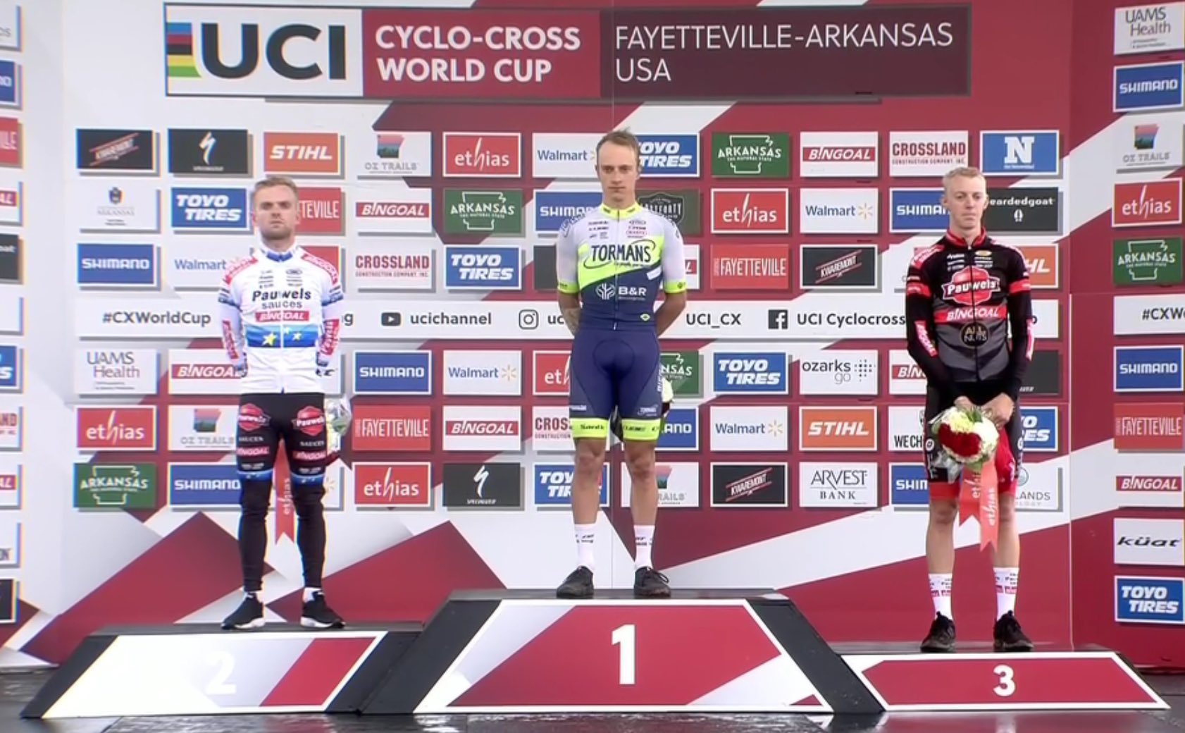 El belga Quinten Hermans logró en Fayetteville su primer triunfo en una prueba de la Copa del Mundo en categoría élite y lo hizo con un dominio incontestable desde la parte inicial de la carrera. El ciclista del Tormans logró marcharse pronto en solitario y abrir una ventaja que no pudieron recuperar Eli Iserbyt, que acabó 2º, Michael Vanthourenhout, 3º, y Toon Aerts, 4º. El trío perseguidor simplemente pudo luchar por el resto de puestos de podio en un recorrido muy embarrado por las lluvias caídas poco antes en la prueba de féminas. Iserbyt conserva el liderato de la competición por 5 puntos de ventaja antes de la disputa de la prueba de este domingo en Iowa City.