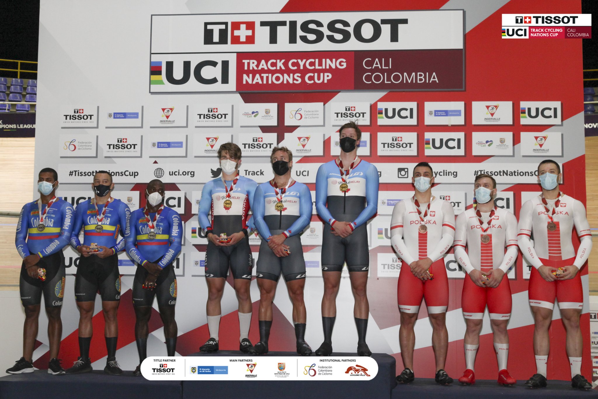Con dos oros cada una, Colombia y Canadá han sido las protagonistas primera jornada de la Copa de las Naciones, dedicada a las pruebas por equipos, que se celebra hasta el domingo en el velódromo Alcides Nieto Patiño de Cali (Colombia).