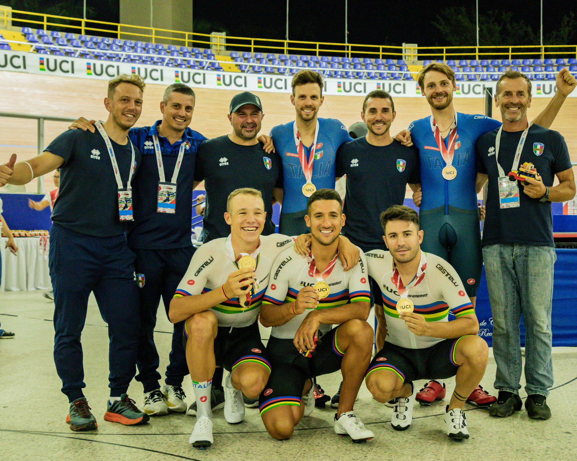 Italia celebrando el éxito en la persecución masculina © Copa Naciones Cali