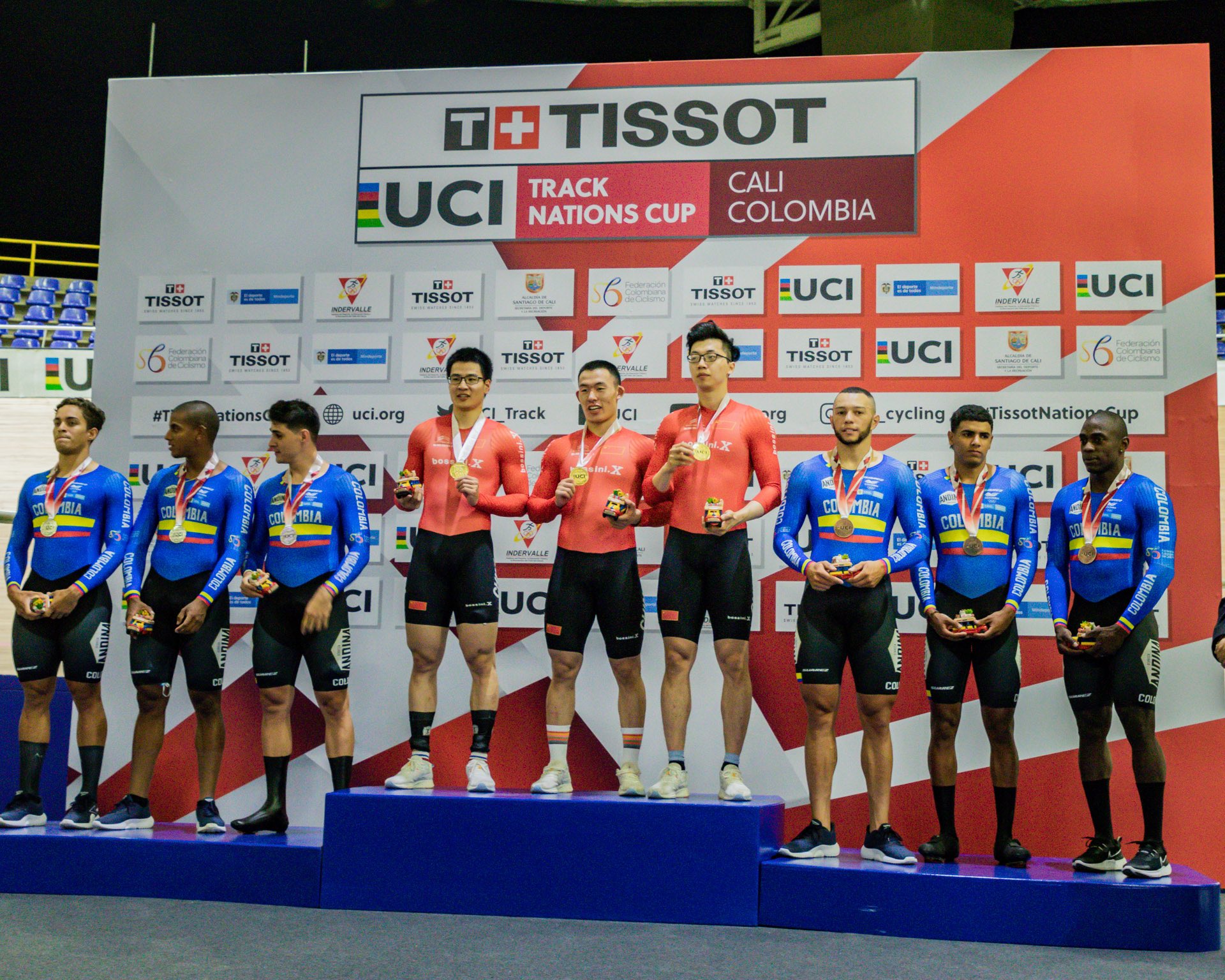 China ha sido la revelación en las pruebas por equipos de la primera jornada de la Copa de las Naciones de Cali. Y es que a su tradicional presencia en las prueba femeninas de velocidad por equipos, donde sumó un nuevo oro, unió esta vez el triunfo en la versión masculina y en la persecución femenina, con la plata en la masculina, donde sólo cedieron ante Italia.