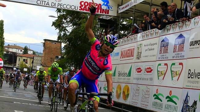El italiano Diego Ulissi se ha impuesto al sprint en la Coppa Sabatini, prueba 1.1 UCI en Italia, al superar en la meta a sus compatriotas Andrea Pasqualon y Davide Villella, a prueba en el Cannondale.