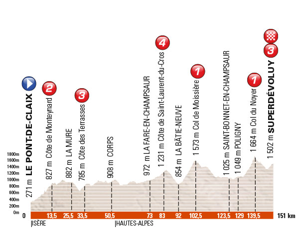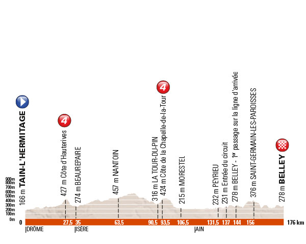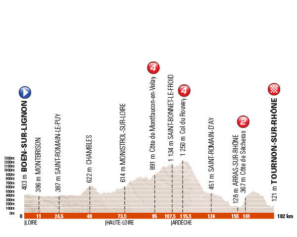 Territorio ideal para buscar el rédito de las tácticas de equipo y las emboscadas será la tercera etapa, una jornada de 182 kilómetros con meta en Tournon-Sur-Rhone y con una peligrosísima Côte de Sécheras a menos de 20 kilómetros para el final que bien podría ser el punto ideal para que alguien intente un movimiento que le sitúe en una buena tesitura de cara a la disputa de la general.