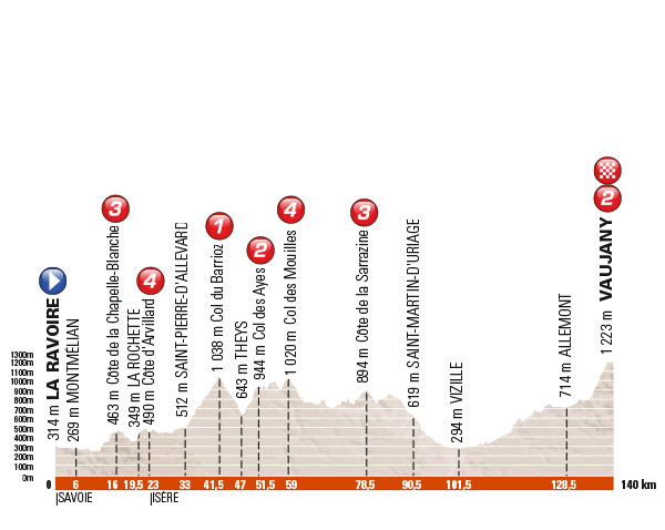 Los velocistas volverán a tener una nueva oportunidad en la cuarta etapa antes de que la carrera entre en su fase definitiva con las dosis de montaña más puras. Comenzará esa batalla final en la quinta jornada con el segundo final en alto en Vaujany, el séptimo puerto de un día en el que el pelotón deberá de cubrir únicamente 140 kilómetros, garantizando una etapa nerviosa y, seguramente, muy rápida.