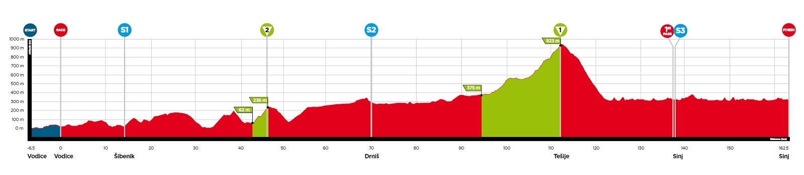 1ª: Martes 1 octubre. Vodice (11:22)-Sinj (15:10), 162,5 kms