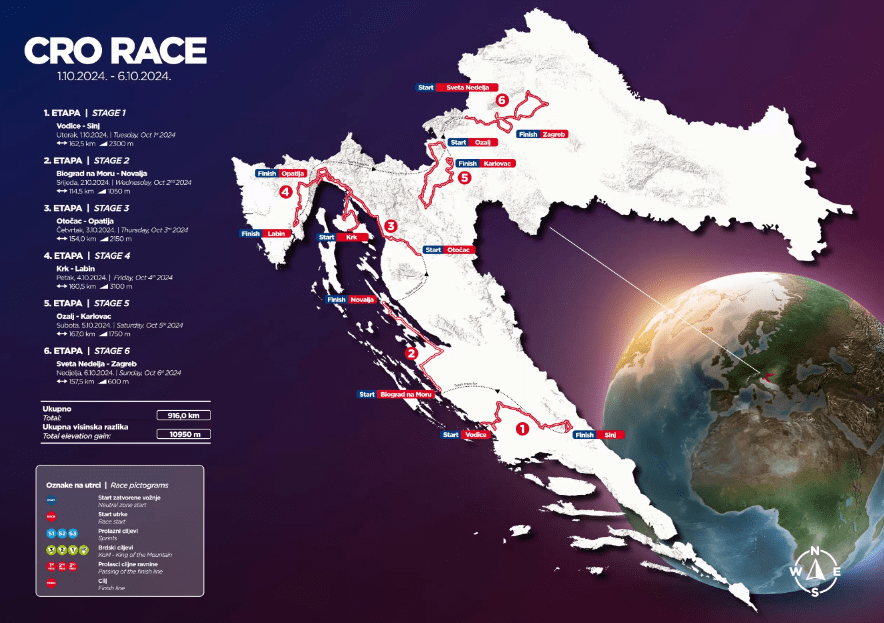 La 9ª edición de la CRO Race (2.1) se disputará entre el 1 y el 6 de octubre entre las localidades de Vodice y Zagreb. El recorrido lo compondrán 900 kilómetros repartidos entre seis jornadas en línea llanas o de media montaña. La etapa reina se vivirá el viernes, con un puerto de categoría especial en el camino y un desenlace en circuito con final en alto.