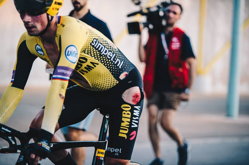 El neerlandés, tercero en el pasado Tour de Francia, considera que “es la peor manera de empezar la carrera. Nunca quieres empezar con una caída. Veníamos a ganar la contrarreloj. Bueno, estas cosas pasan”.