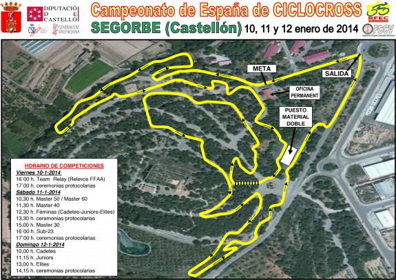 La Diputación de Castellón ha acordado con la Real Federación Española de Ciclismo que la ciudad de Segorbe acoja durante los próximos días 10, 11 y 12 de enero el Campeonato de España de Cyclo-cross en todas sus categorías (élites, sub-23, juniors, cadetes y masters), tanto masculinas como femeninas.