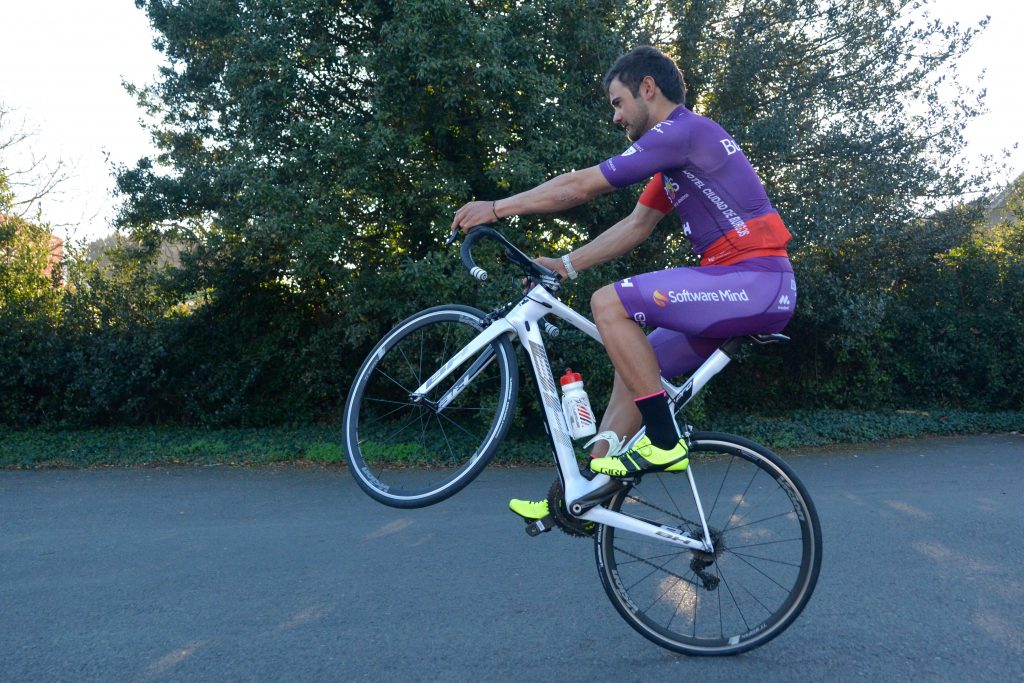 La peligrosidad aumenta en condiciones de lluvia y, como buen gallego, el sprinter de Burgos-BH está habituado a entrenarse bajo el agua: “Esta pretemporada he tenido mucha suerte, casi no me he mojado, pero cuando llueve suelo entrenar bastante con la bici de ciclocrós. Me tiro por pistas de monte porque es menos peligroso que la carretera”.