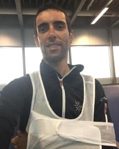 Ahora ya descansa en Gijón y tiene que llevar el brazo en cabestrillo durante varias semanas, tras diagnosticarle una rotura de omóplato con luxación de hombro. Esto hace que ya no pueda recuperarse para participar en la Vuelta a España y por lo tanto el escalador de Cofidis ya piensa en prepararse de cara a la próxima temporada.