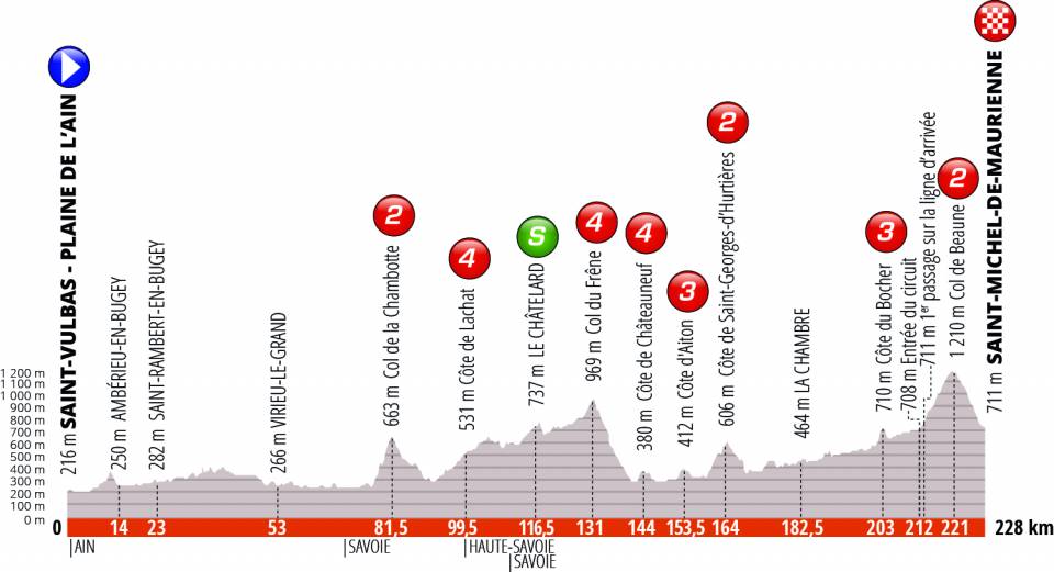 6ª. Viernes 14 junio. Saint-Vulbas Plaine de l’Ain – Saint-Michel-de-Maurienne | 228 Kms. |