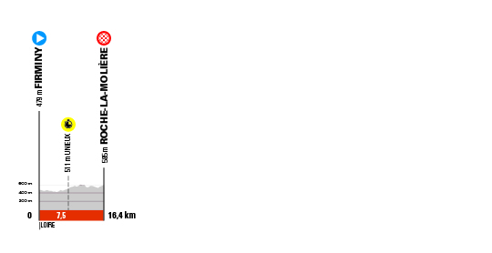 En los últimos kilómetros, hacia la meta cuesta arriba en Saint-Haon-Le-Vieux, la pendiente se elevó ligeramente. Al principio falso llano y en los últimos 700 metros ya una pared del 5,7% hasta meta. Deceuninck-Quick-Step, Bora-hansgrohe, Jumbo-Visma, INEOS Grenadiers y Bahrain Victorious tomaron la delantera para buscar sus opciones de victoria parcial y, en el caso de Bora, proteger el amarillo como finalmente consiguieron.